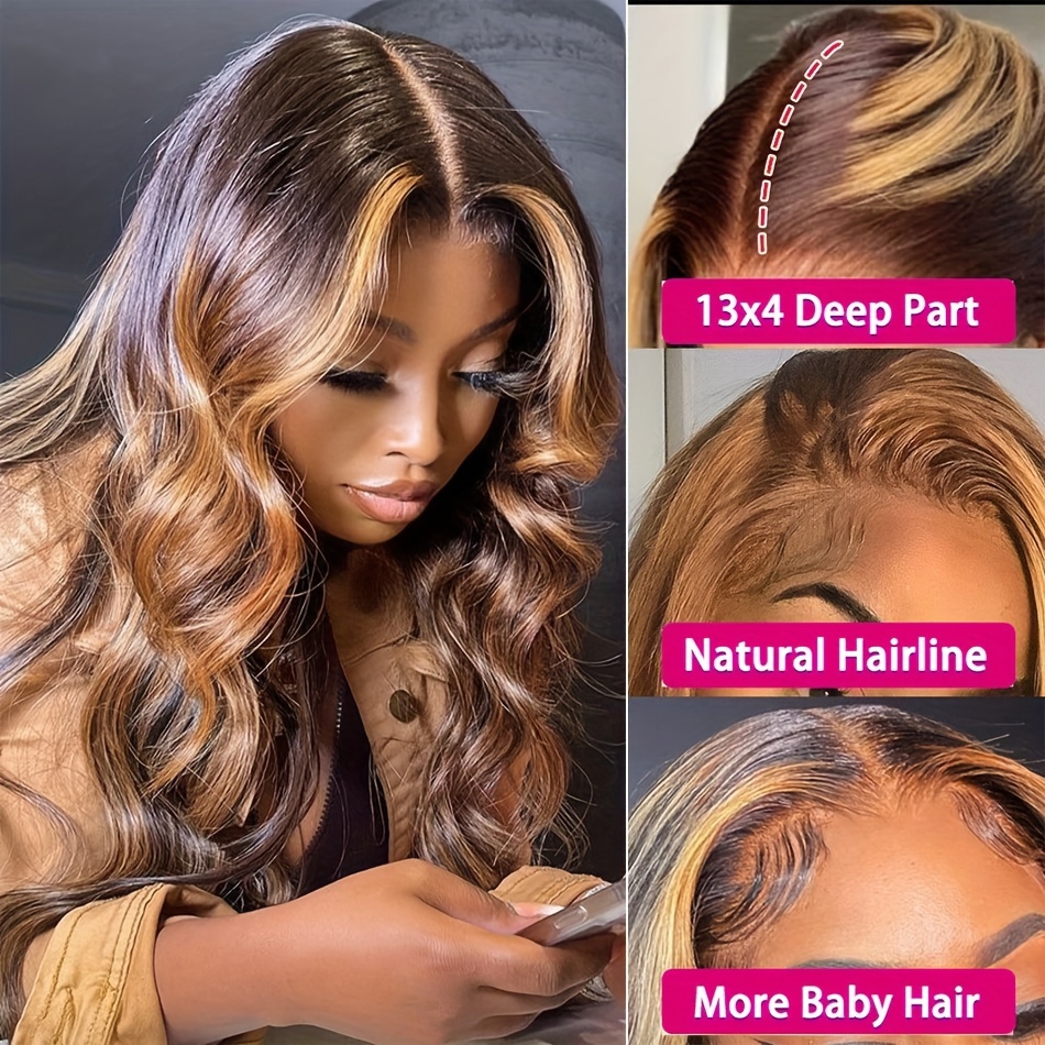 180% Density Ombre Body Wave Highlight Brazilian Human Hair 13×6 HD Lace Front Wig