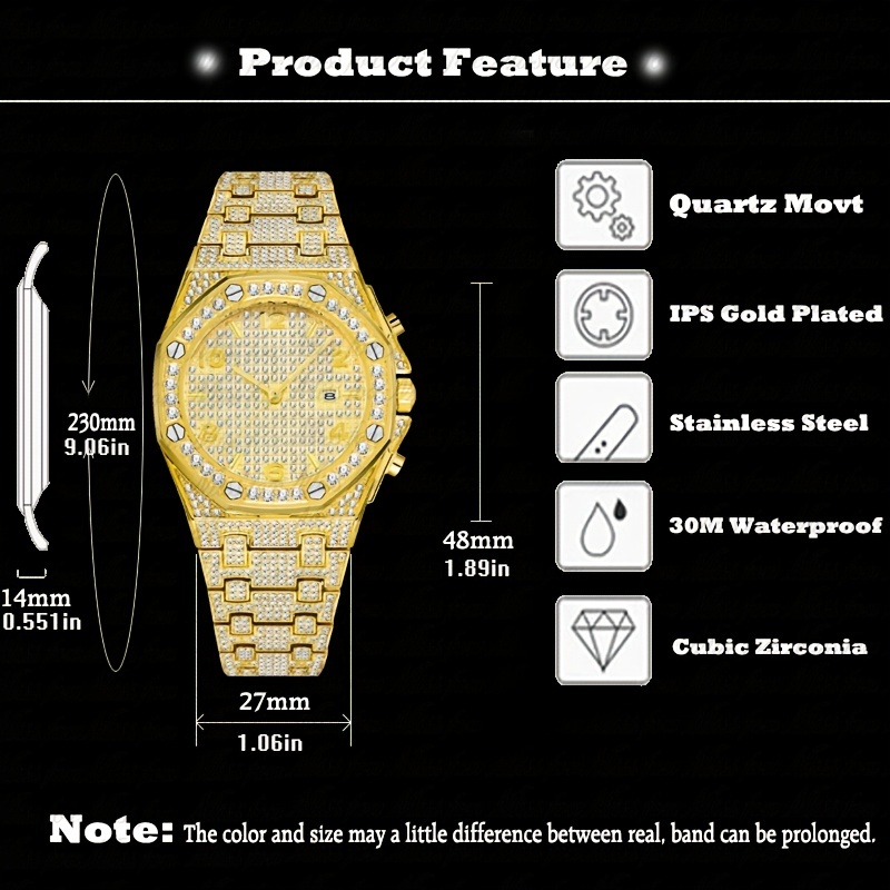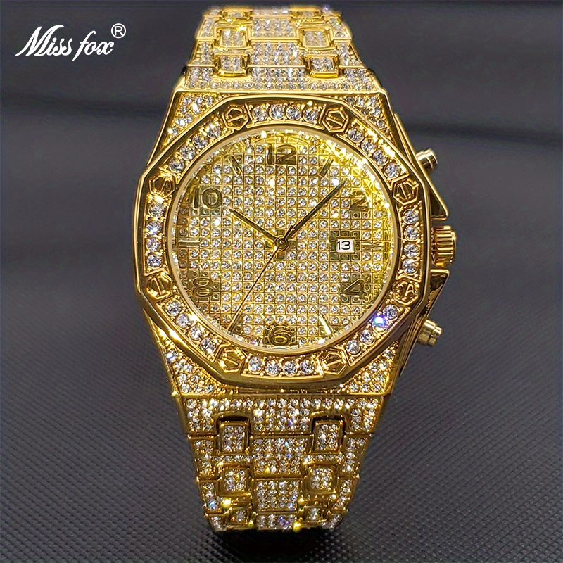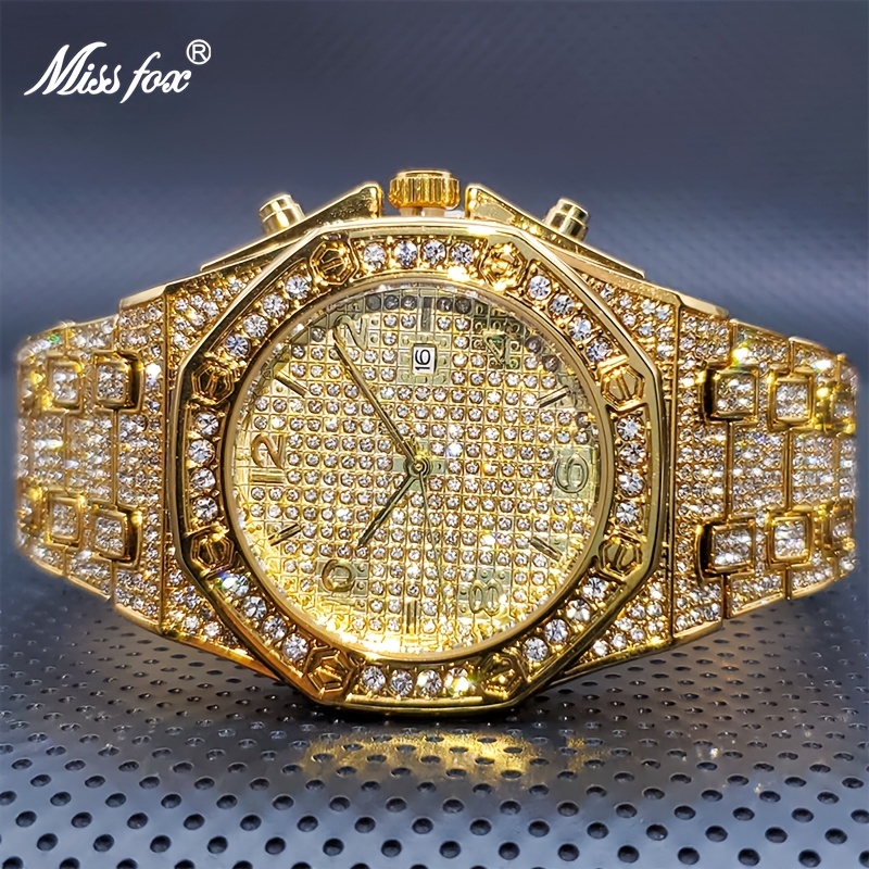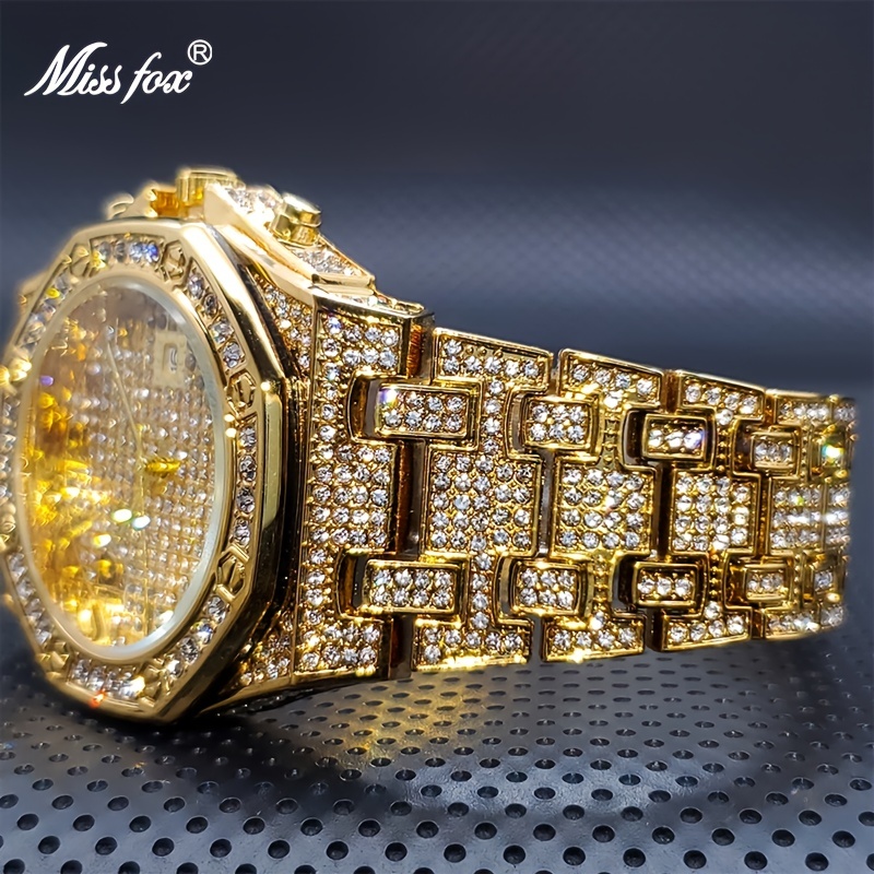 3 reviews for 1pc Golden Watch Men’s Luxury Rhinestone Big Wrist Quartz