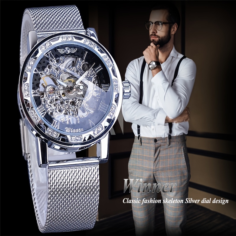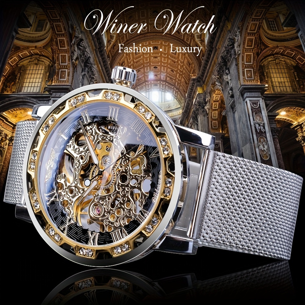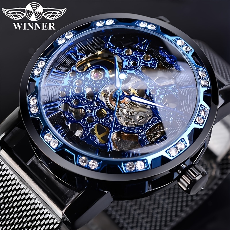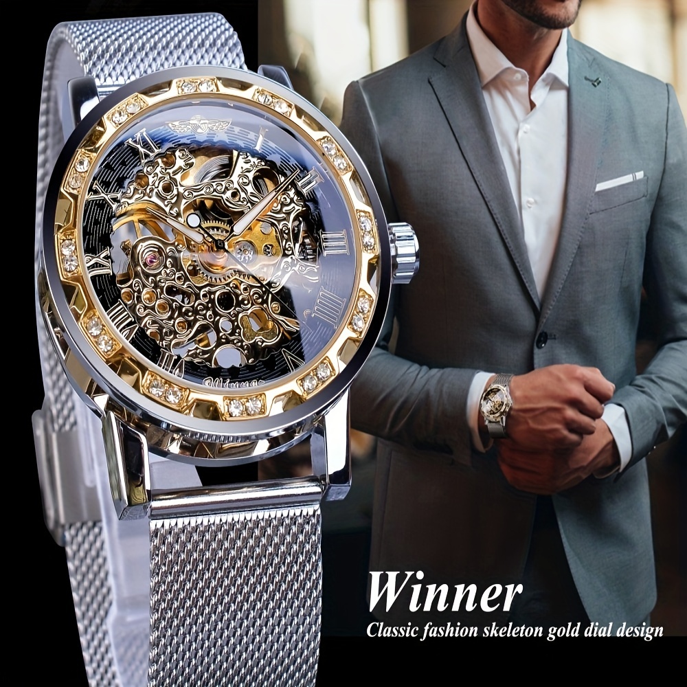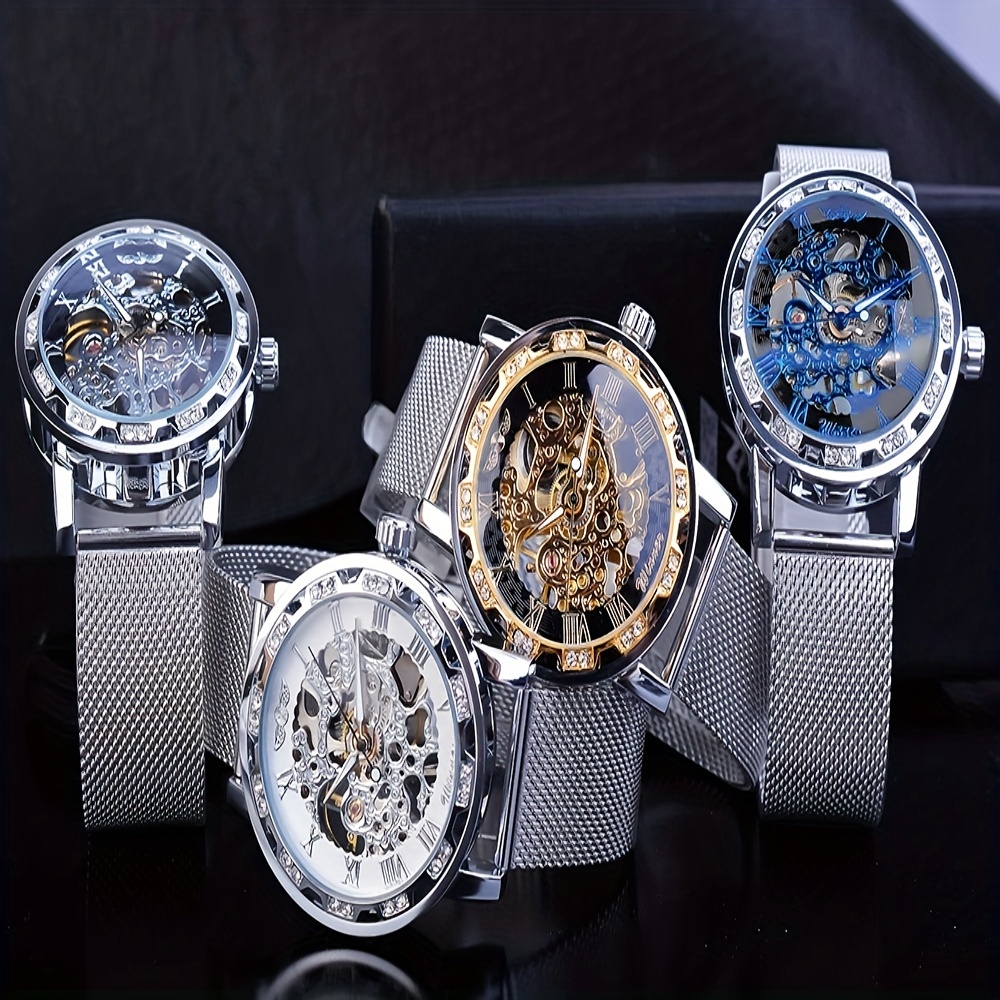 1pc Men’s Fashion Rhinestone Mechanical Watch