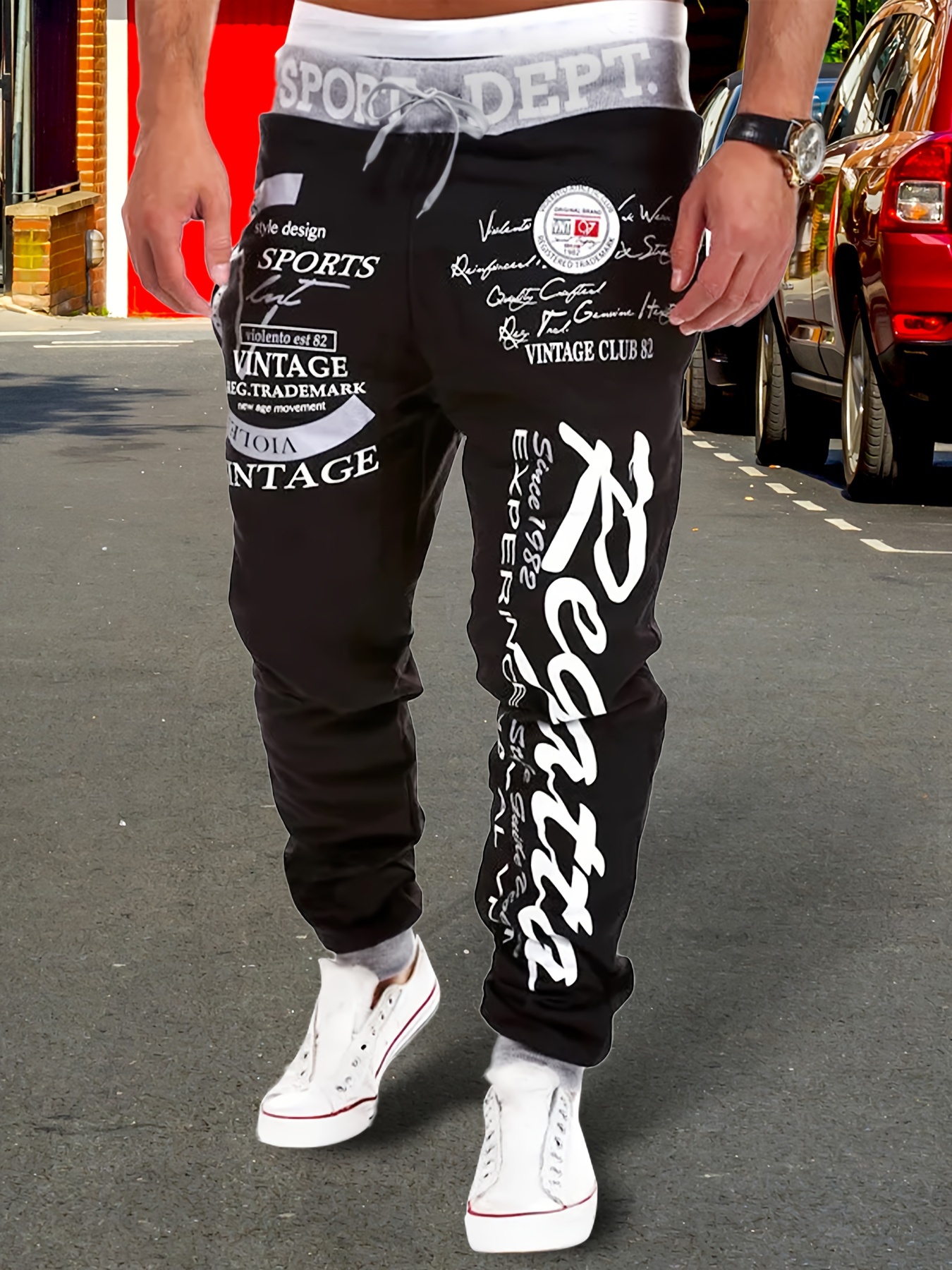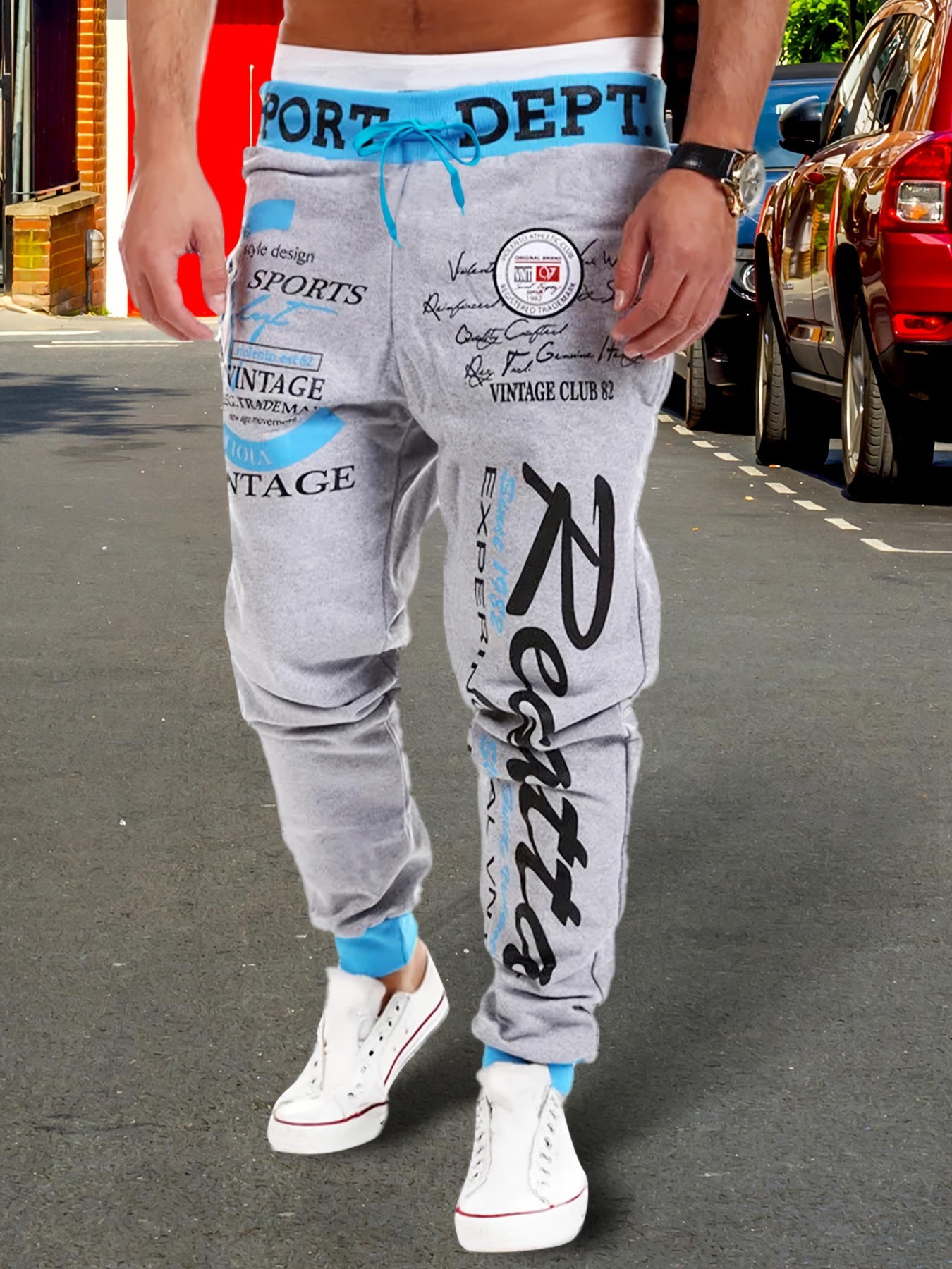 Color Block Men’s Letter Print Drawstring Sweatpants