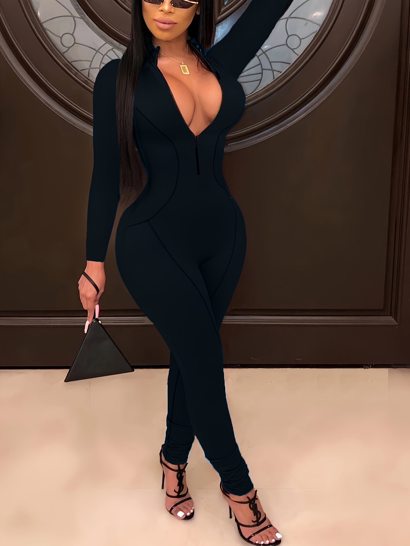 Dase Zipper Long Sleeve Bodycon Jumpsuit