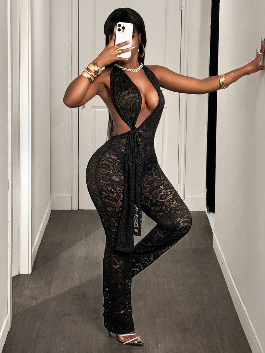 1 review for Deep V Asymmetrical Neck Strap Sexy Jumpsuit
