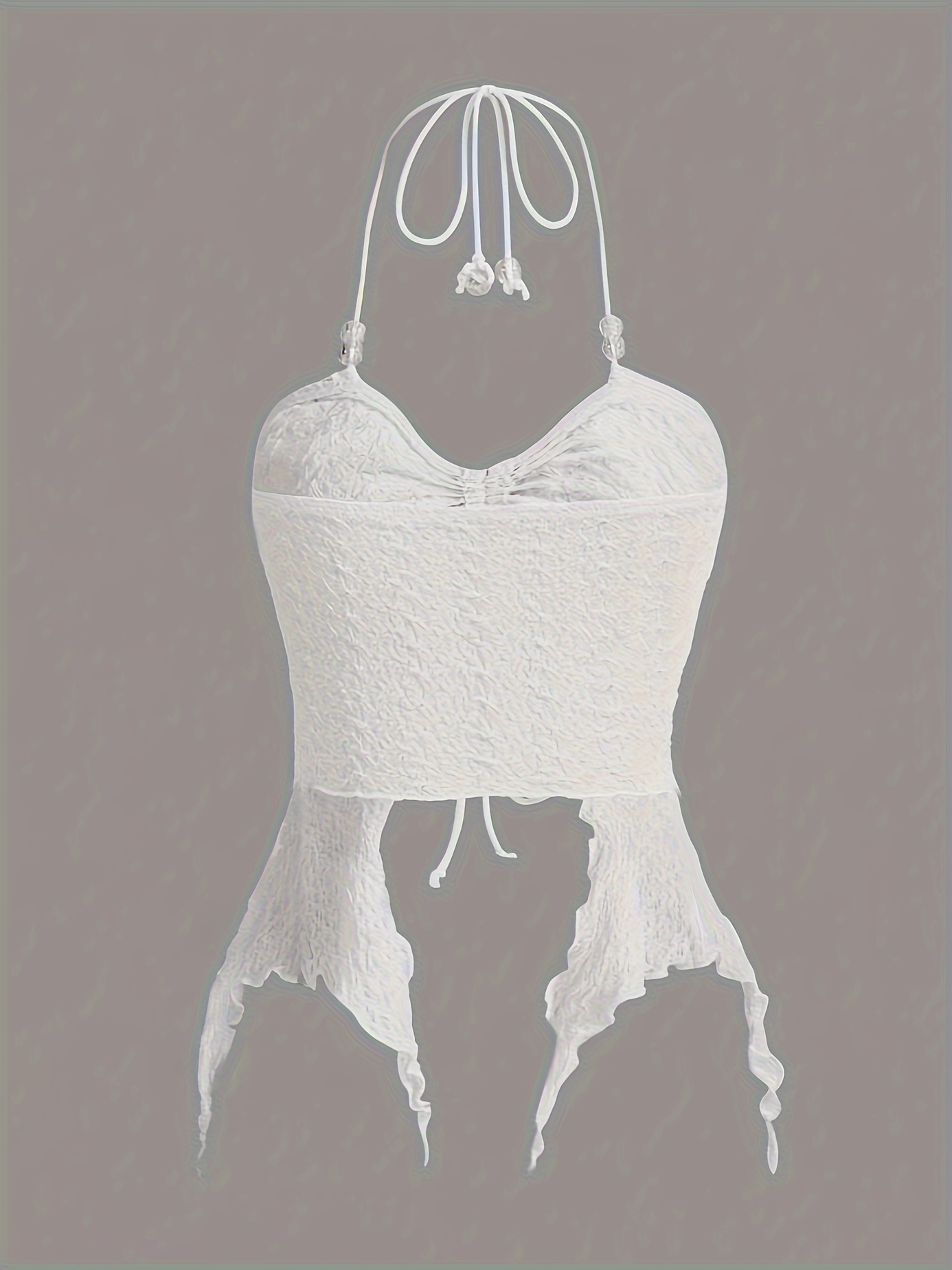 Drawstring Asymmetric Lettuce Trim Bead Detail Top