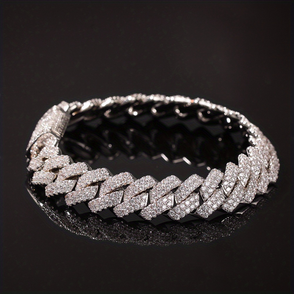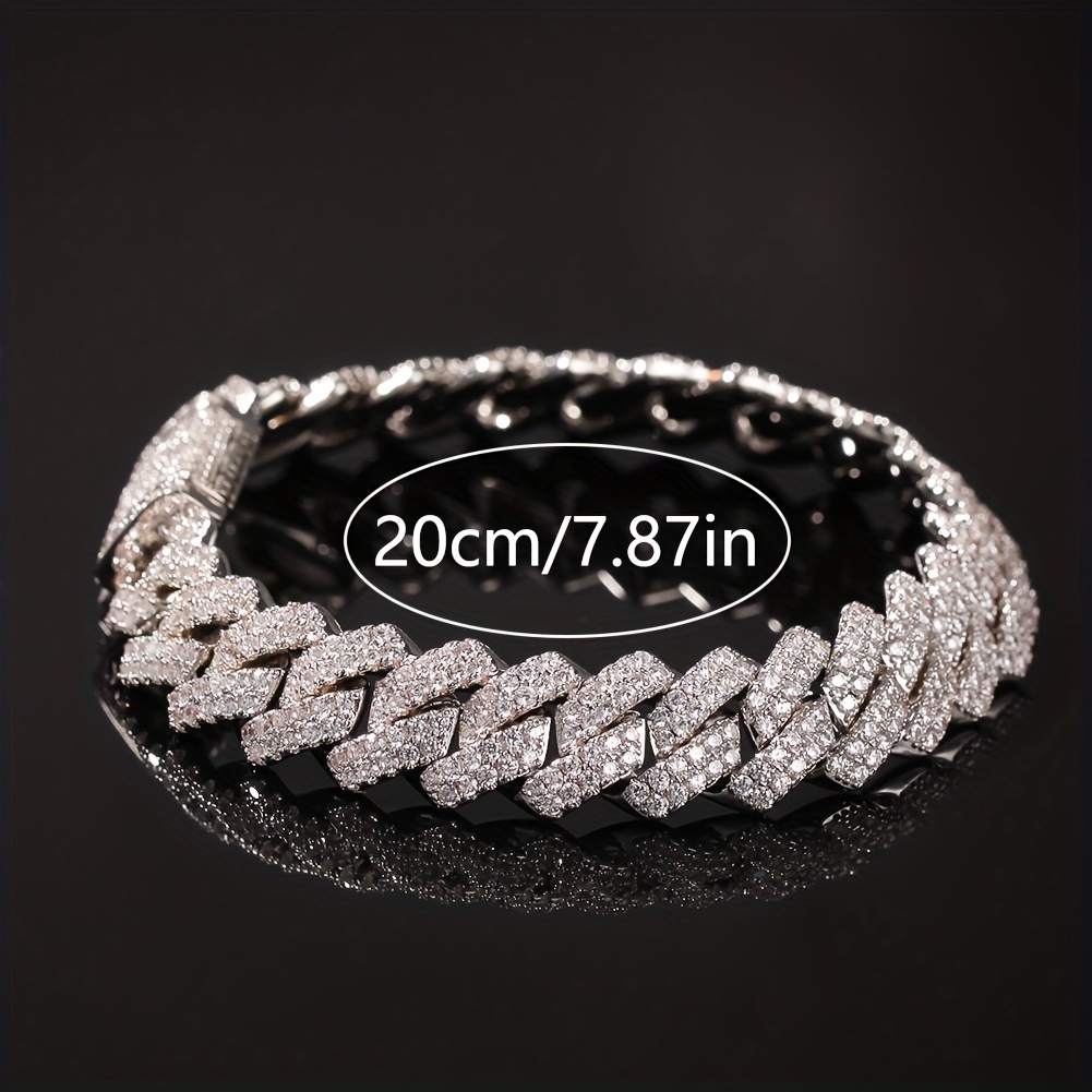 Fashion Men’s Full Faux Diamond Cuban Chain Flip Box Buckle Cuban