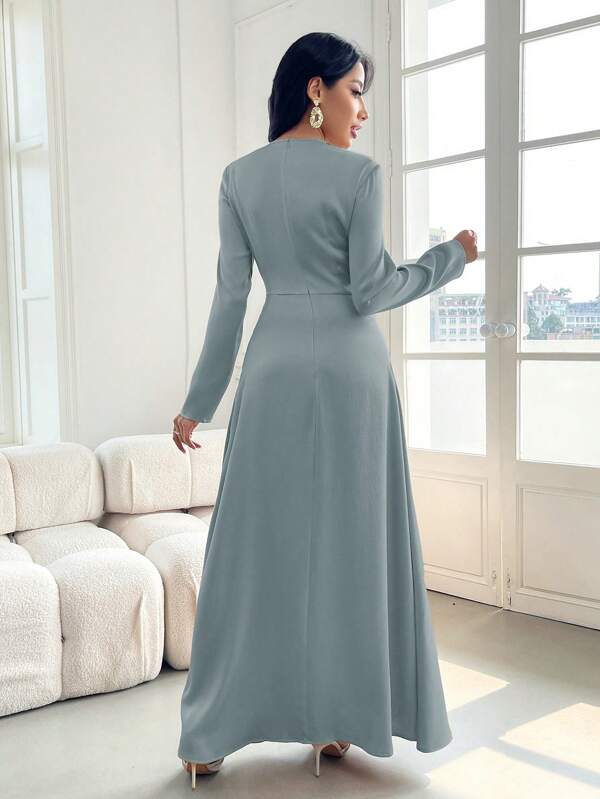 Fashionable Solid Color Long Sleeve Arabic Style Dress