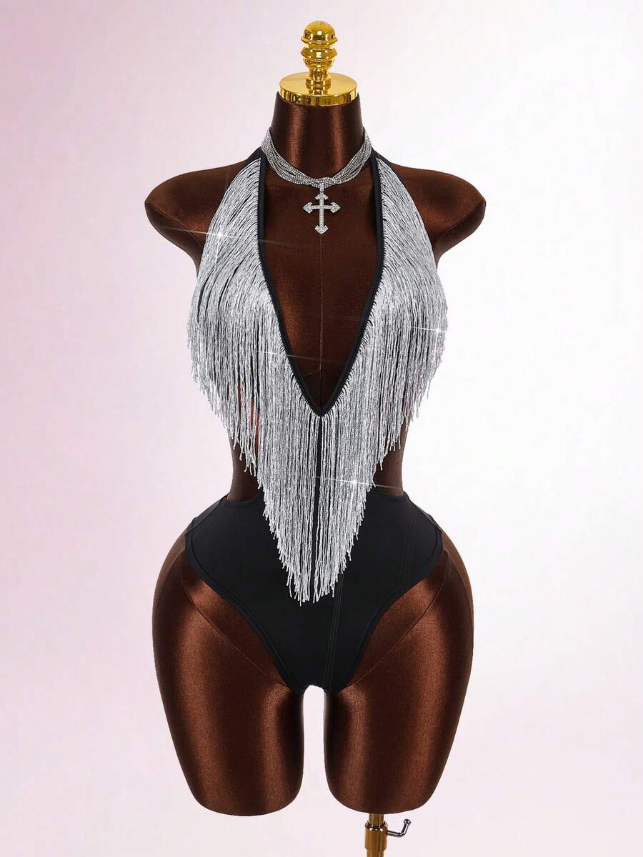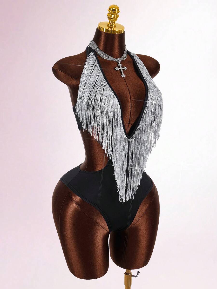Details: Backless, Cut Out, Fringe