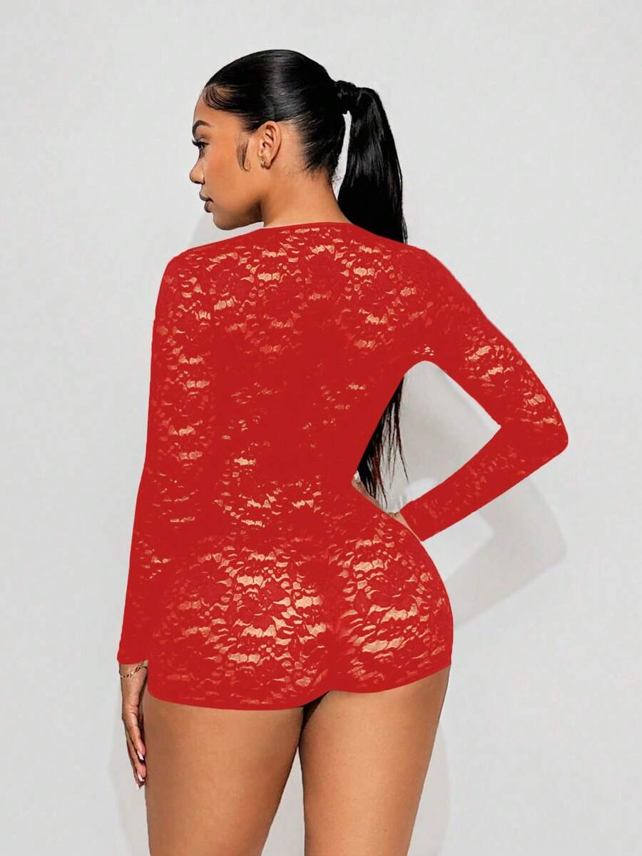 Lace Sheer Sexy Long Sleeve Bodysuit