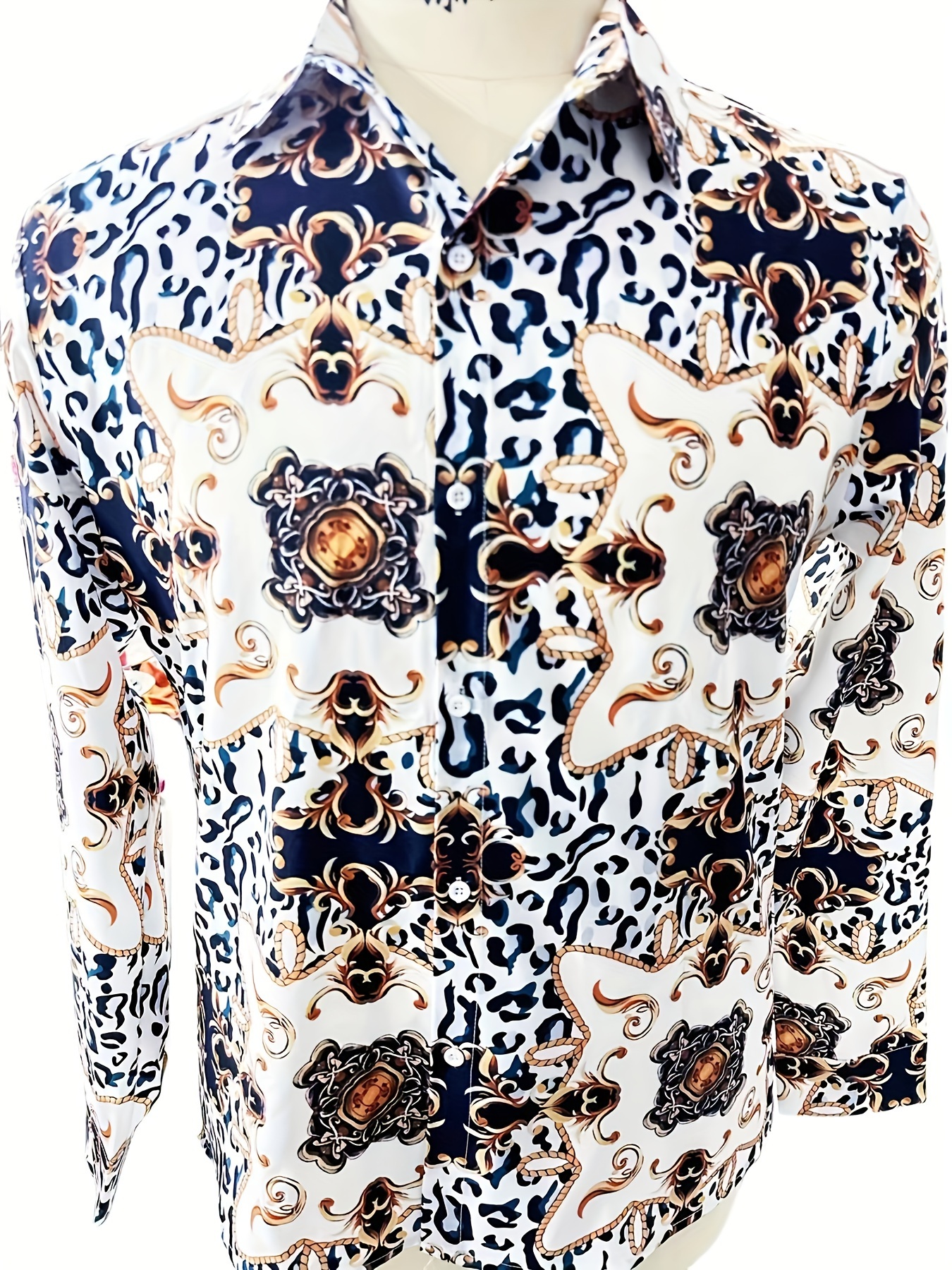 Leopard Print Men’s Baroque Style Vintage Long Sleeve