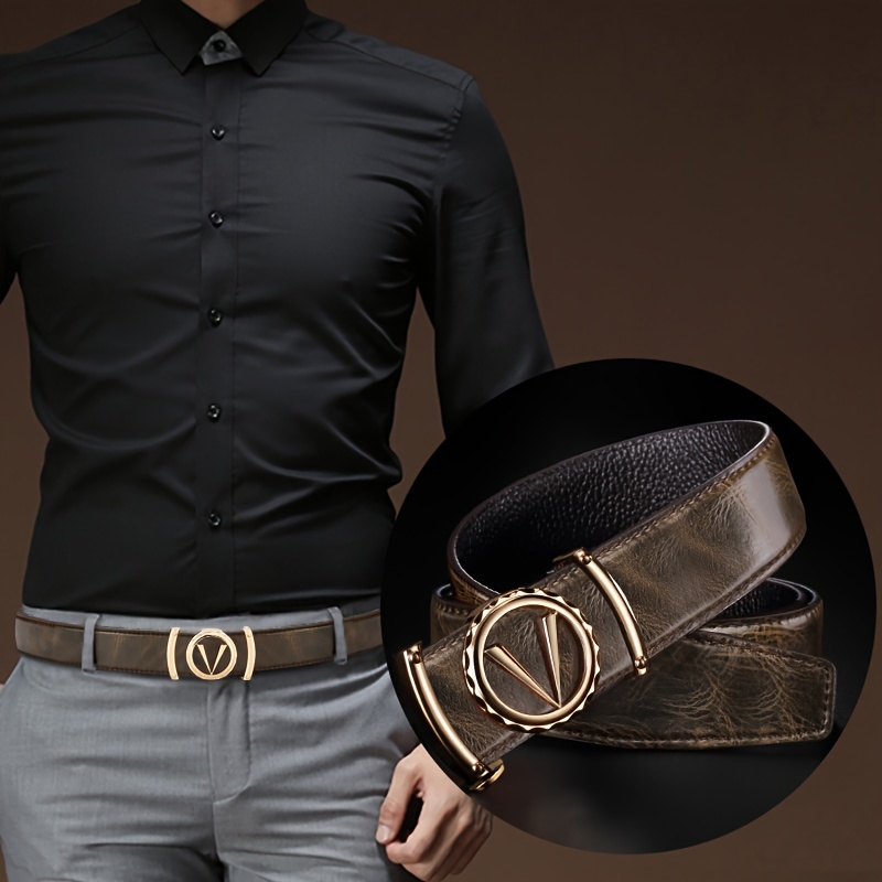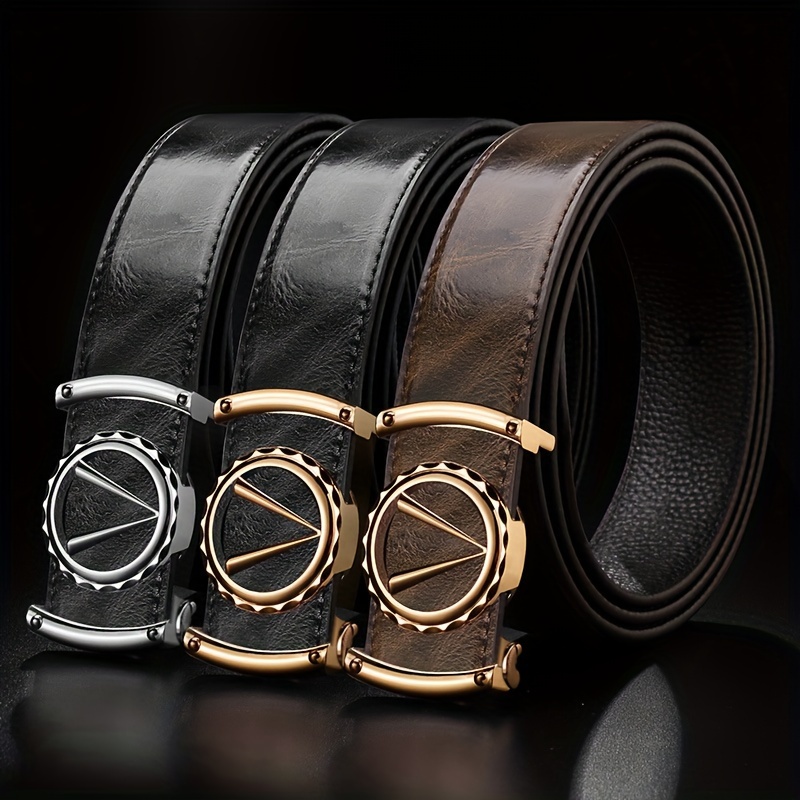 Men Genuine Leather Automatic Buckle Belt, Youth Casual Pants Belt