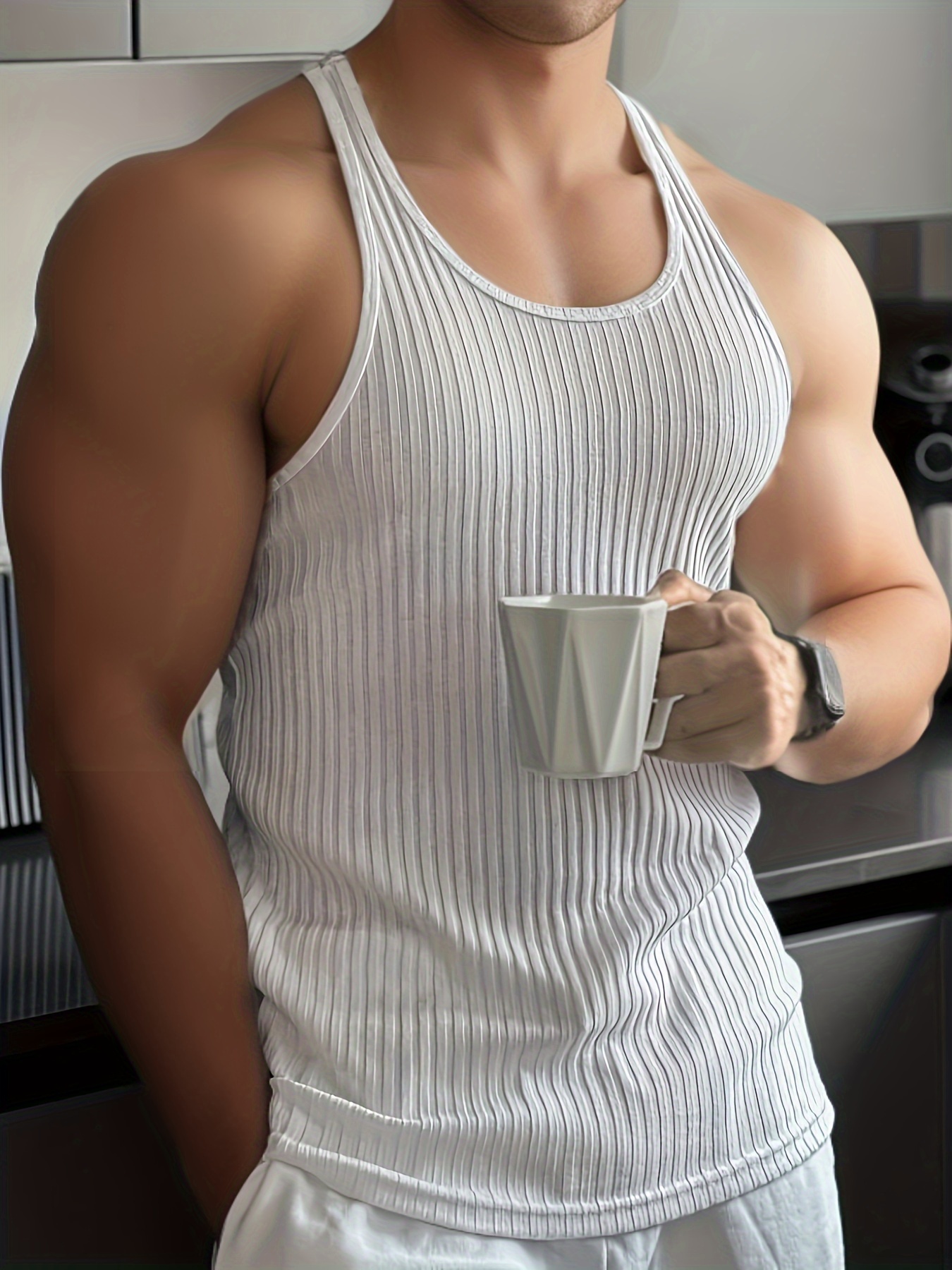 Men’s Breathable Tank Top, Drying Stretch Crew Neck