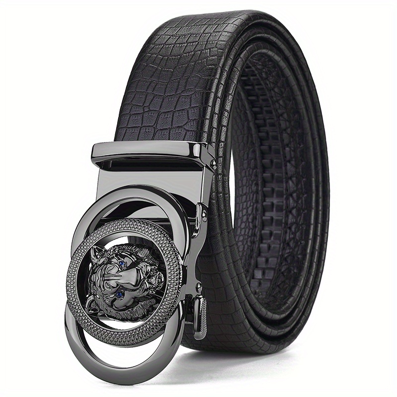 Men’s Calfskin Leather Snake Pattern Lion Head Buckle Belt Business Belt