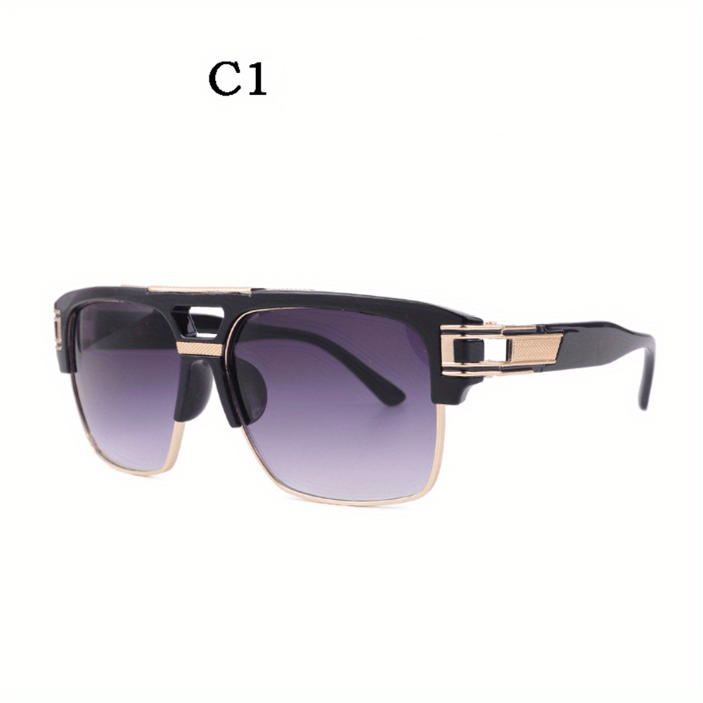 Men’s Fashion Sun Glasses, Vintage Flat Mirror Square Frame Sunglasses