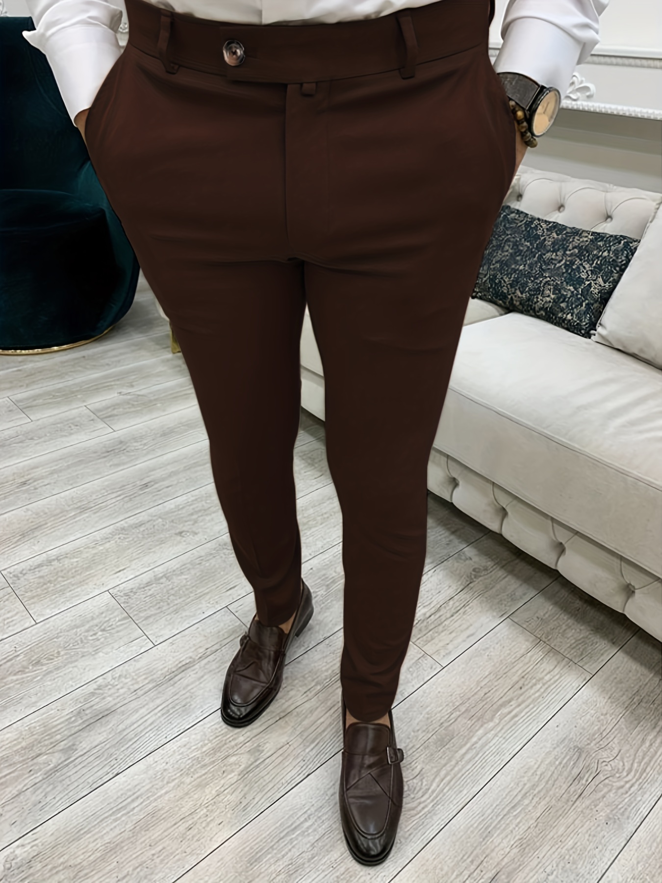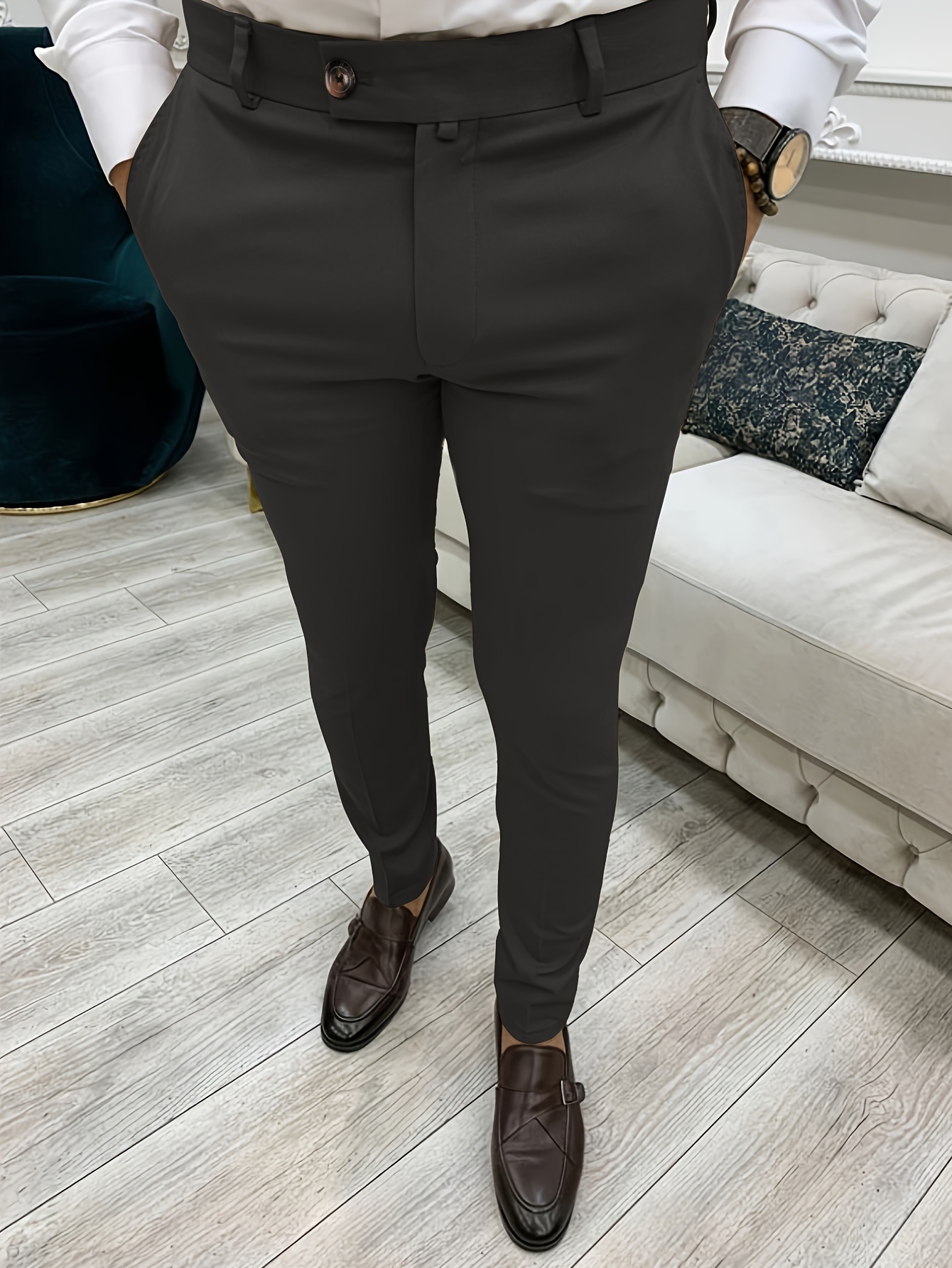 Men’s Formal Solid Color Slightly Stretch Dress Pants For Business