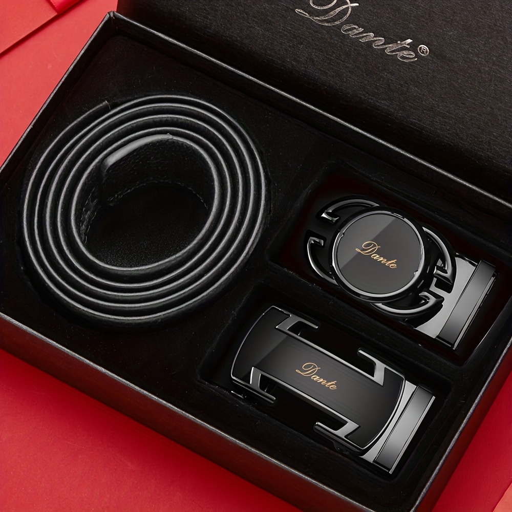 Men’s Genuine Leather Belt With 2pcs Automatic Buckles