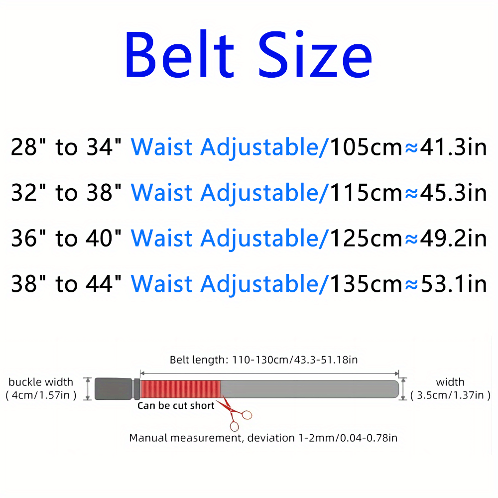 28" To 34" Waist Adjustable/105cm, 32" To 38" Waist Adjustable/115cm, 36" To 40" Waist Adjustable/125cm, 38" To 44" Waist Adjustable/135cm
