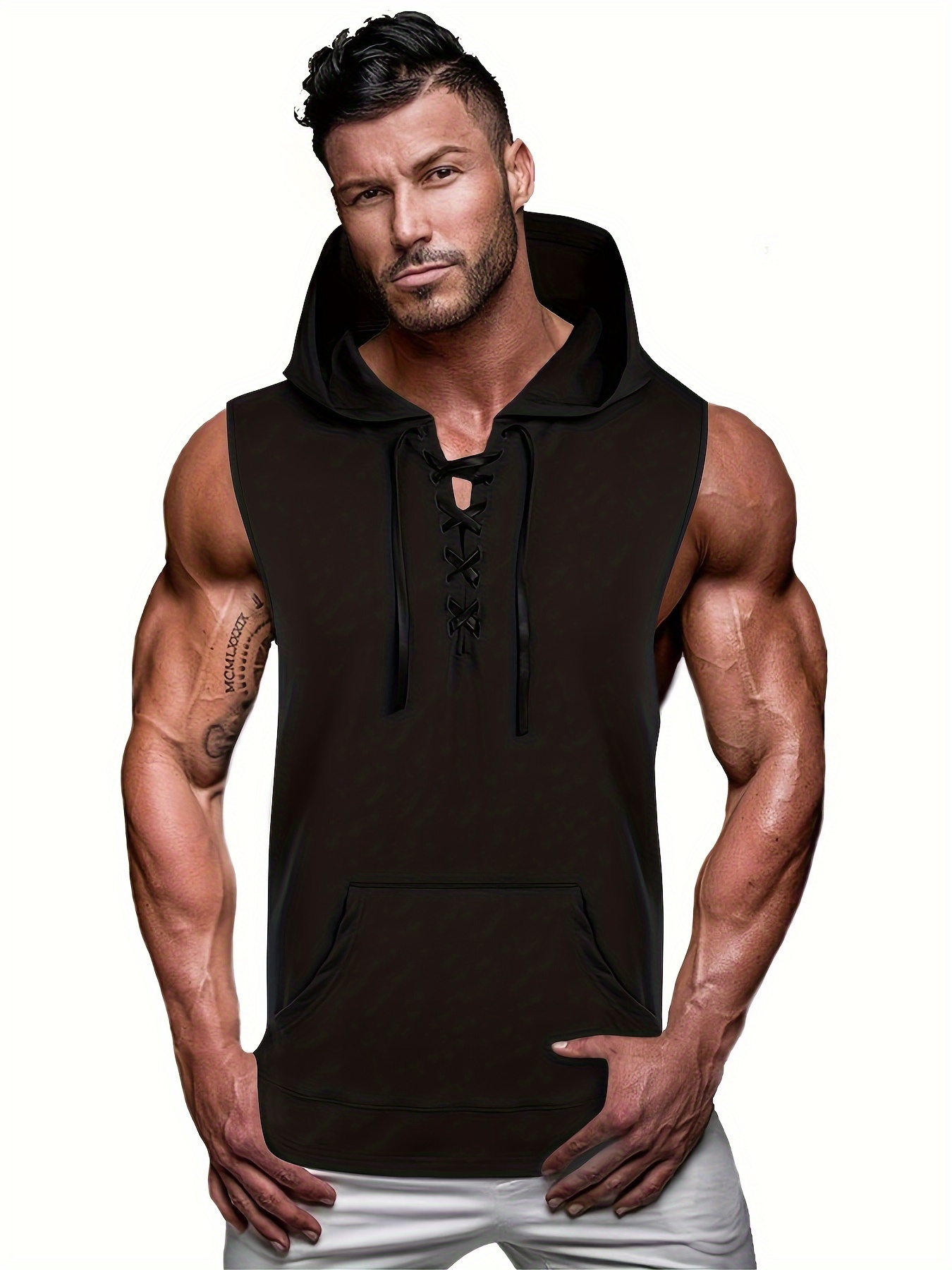 Be the first to review “Men’s Hooded Solid Color Sleeveless Shirt”