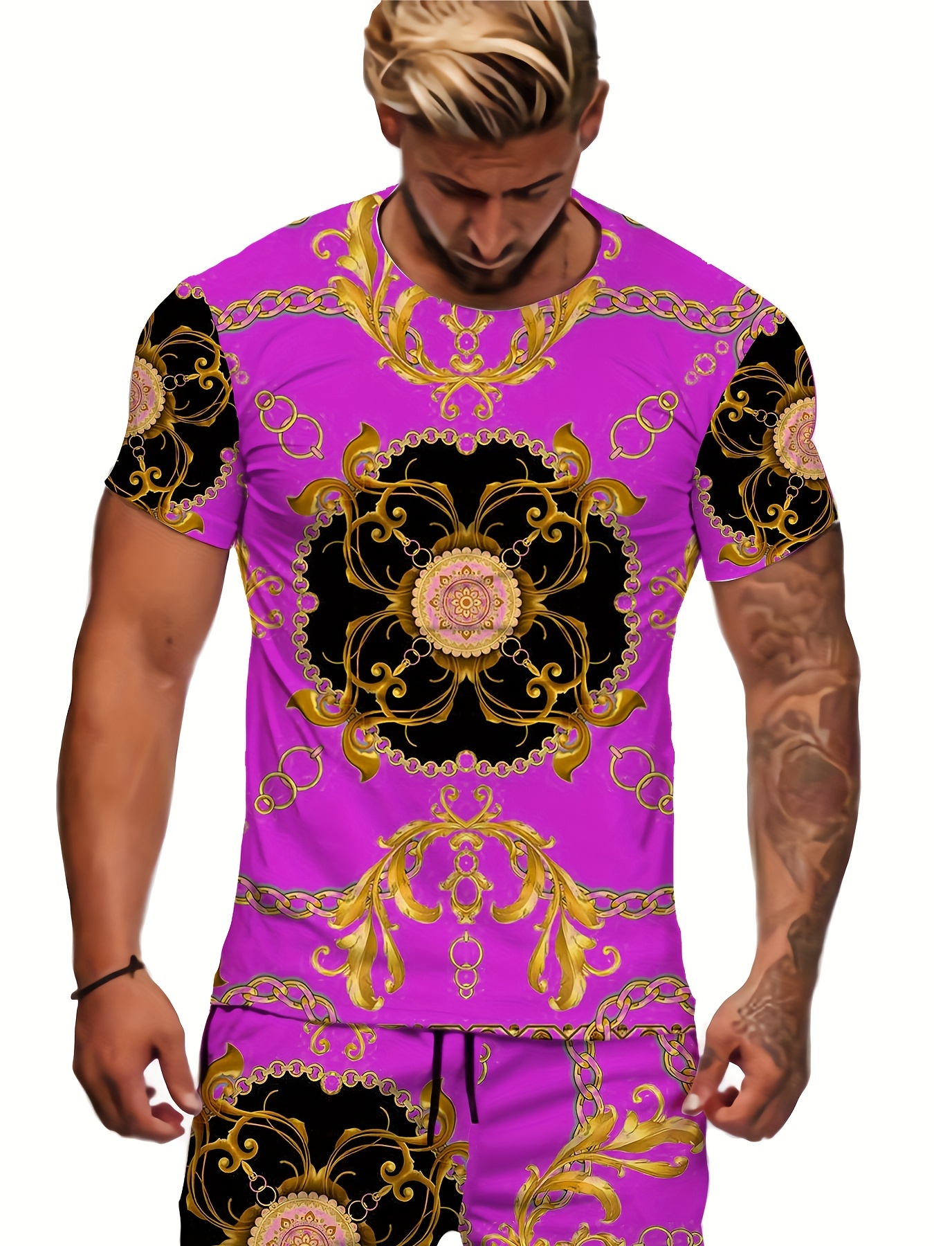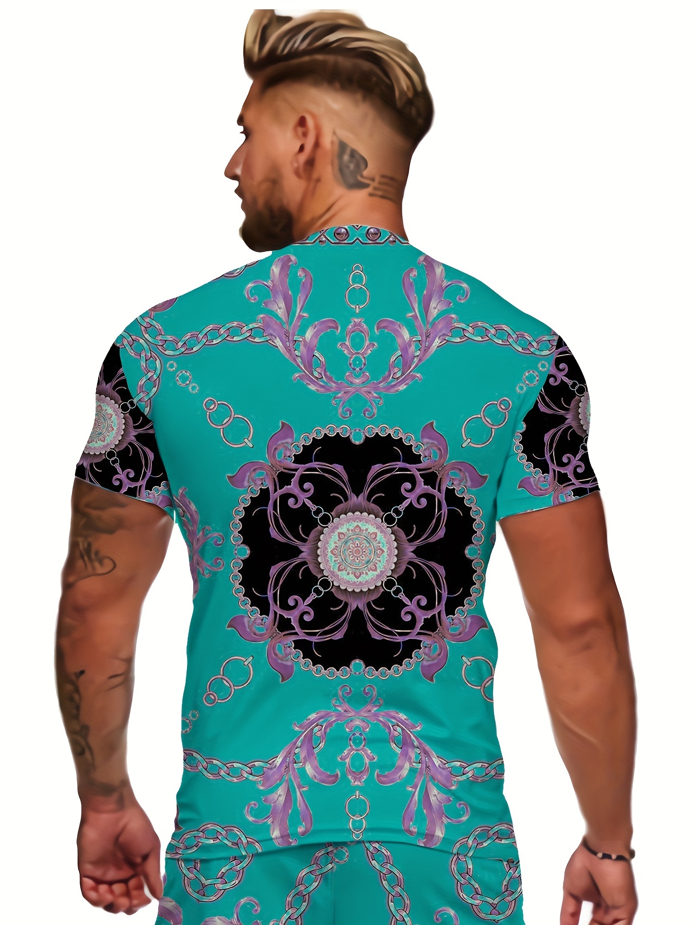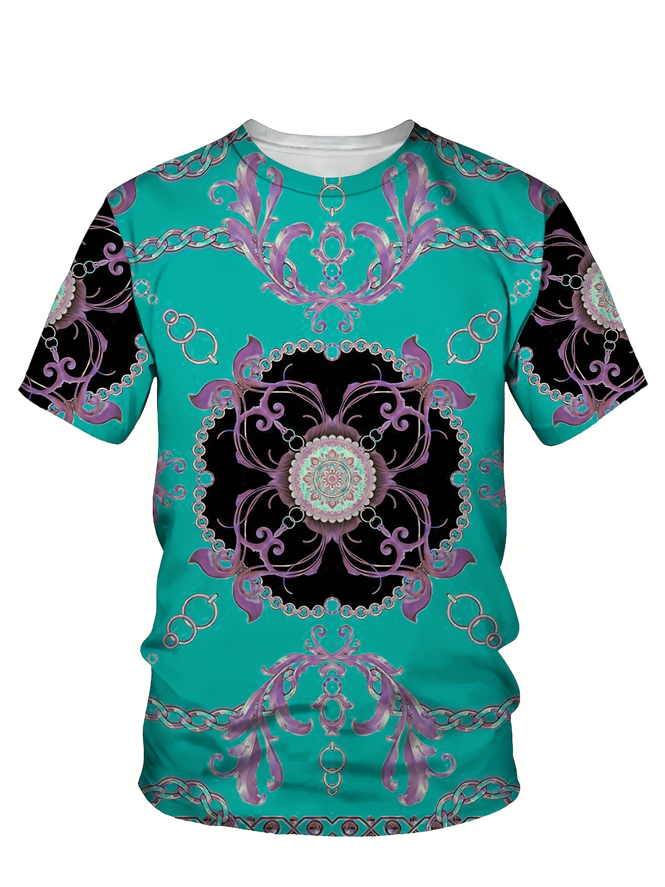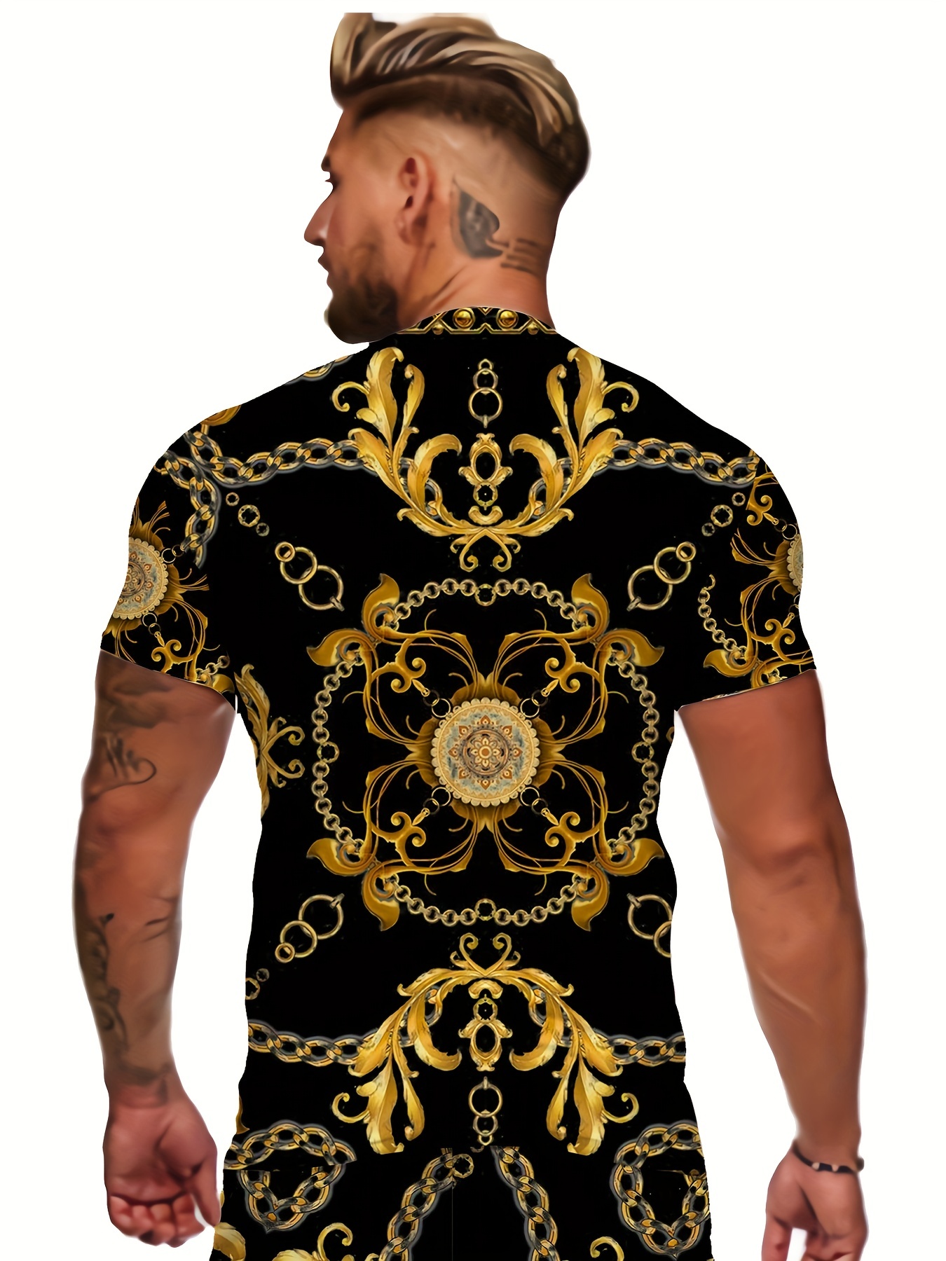 Men’s Luxury Flower 3D Print Fashion Round Neck T-shirt