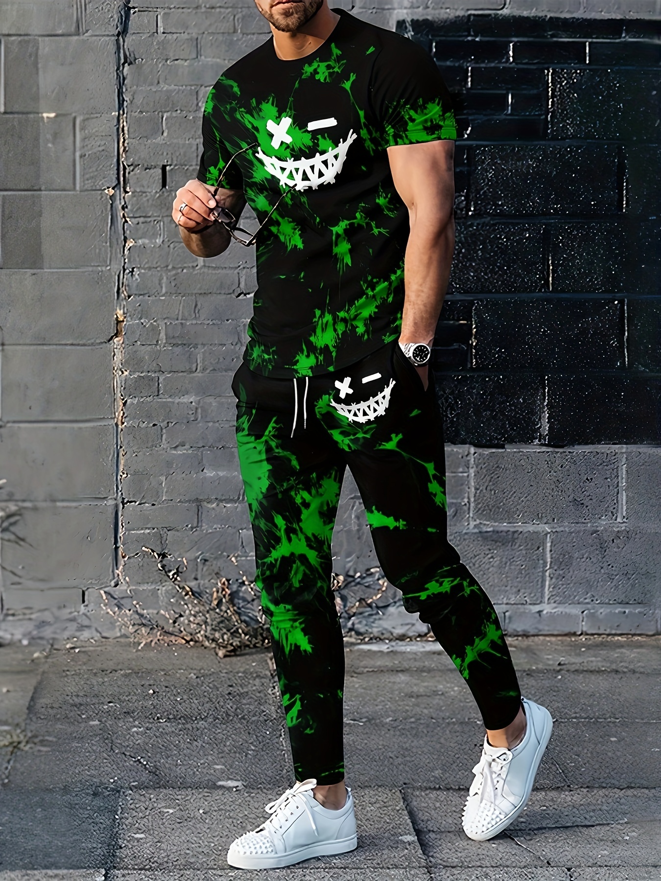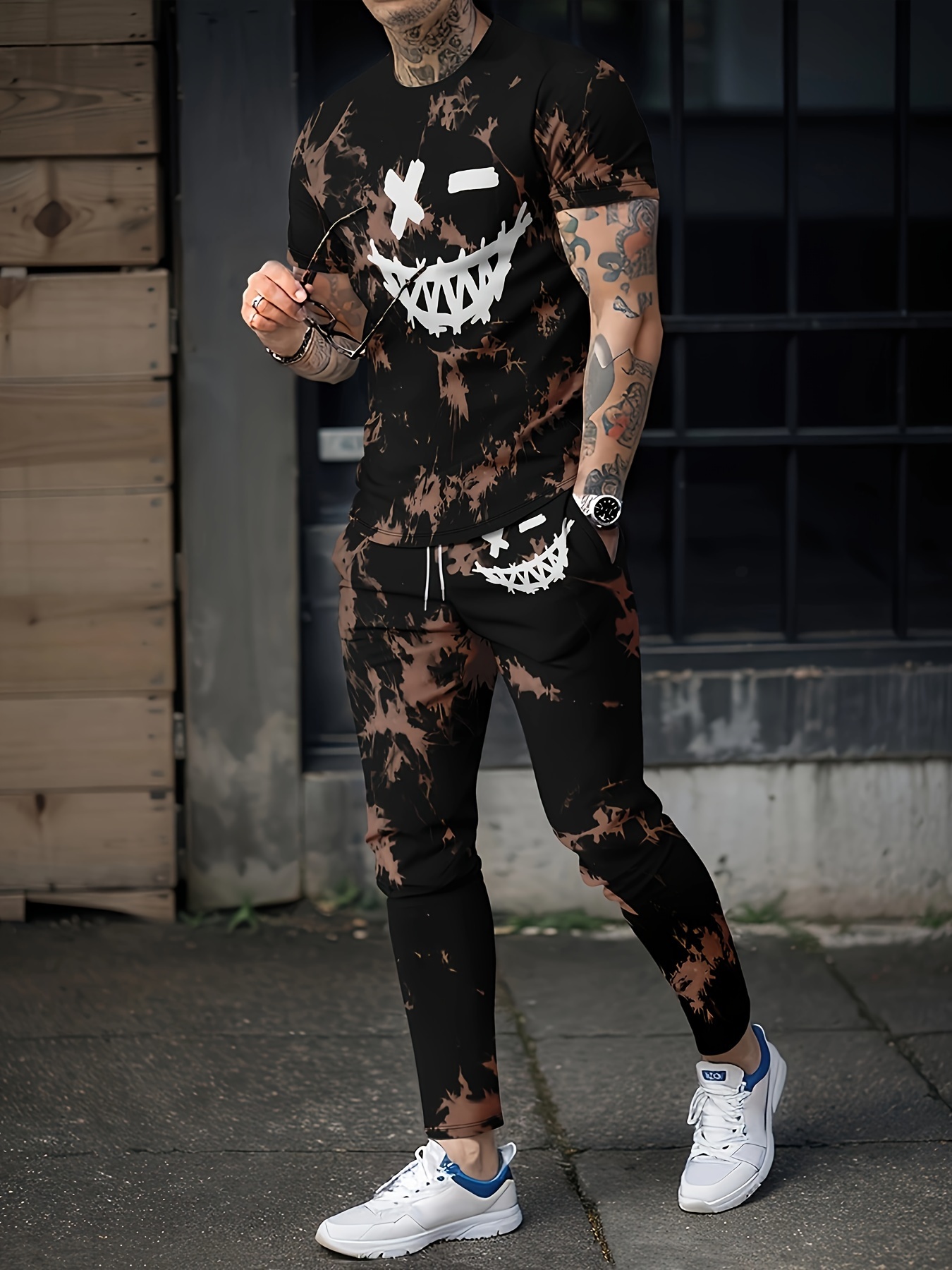 Men’s Trendy 2Pcs Outfits, Short Sleeve T-shirt And Drawstring Sweatpants