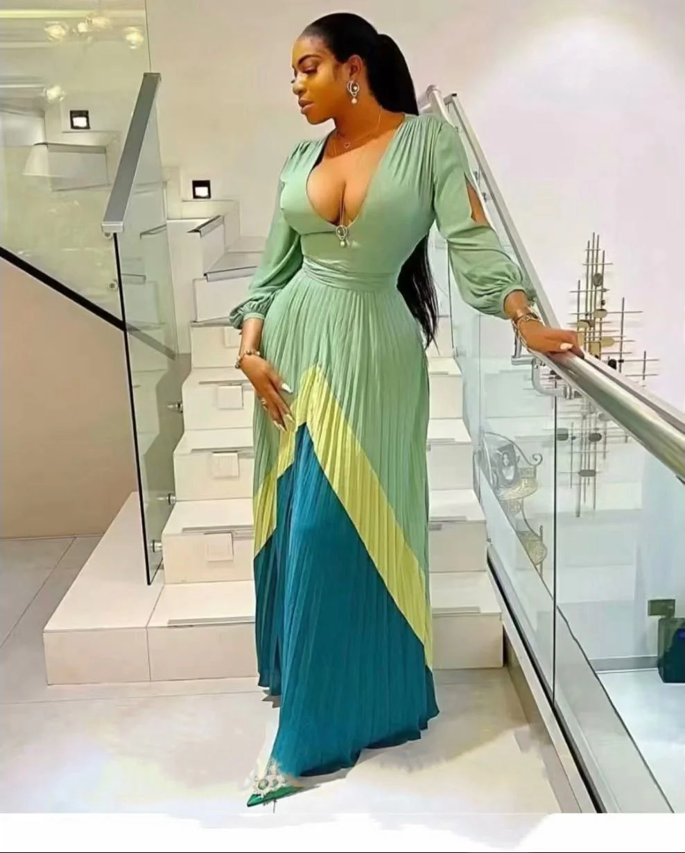 Multi-Color Deep V-Neck Maxi Dress