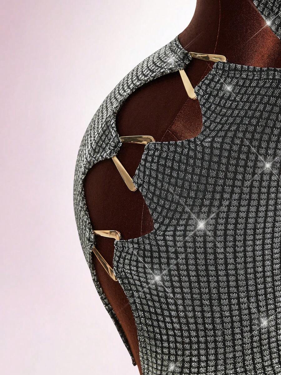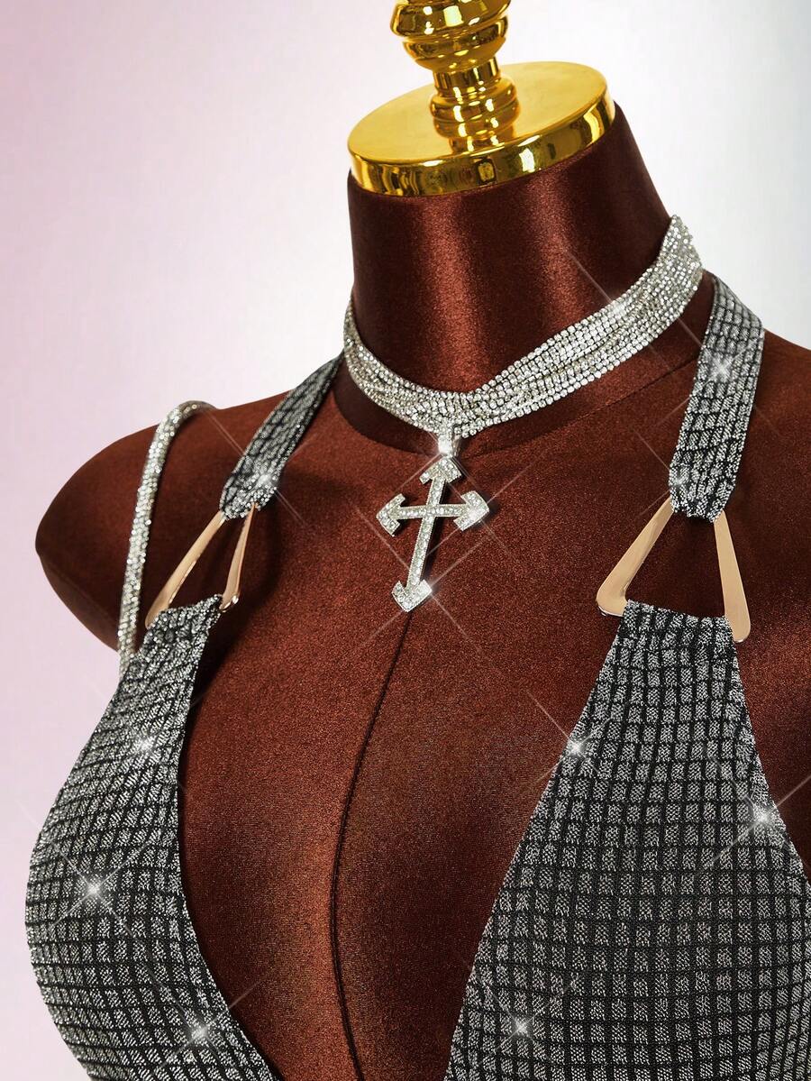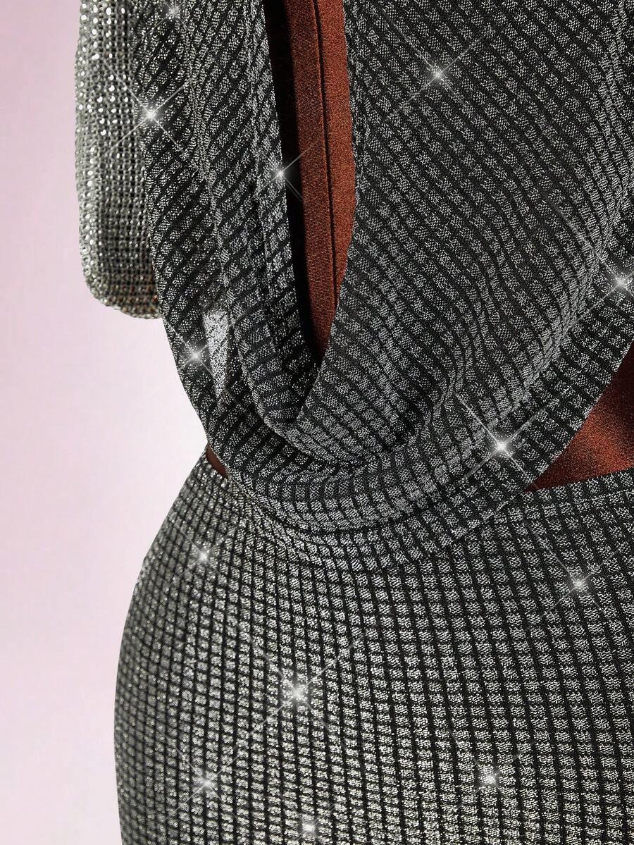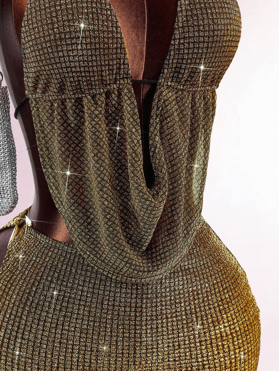 Plunging Neck Glitter Halter Top And Bodycon Mini Skirt 2-Piece Set