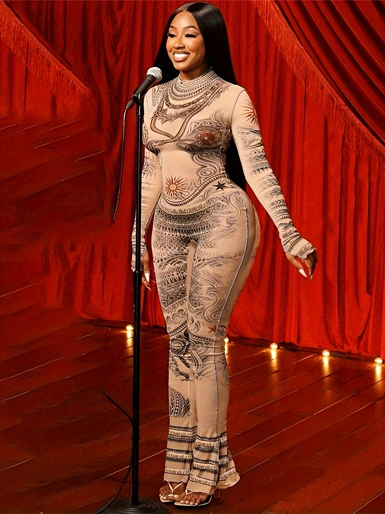 Be the first to review “Print Flare Leg Long Sleeve Jumpsuit”