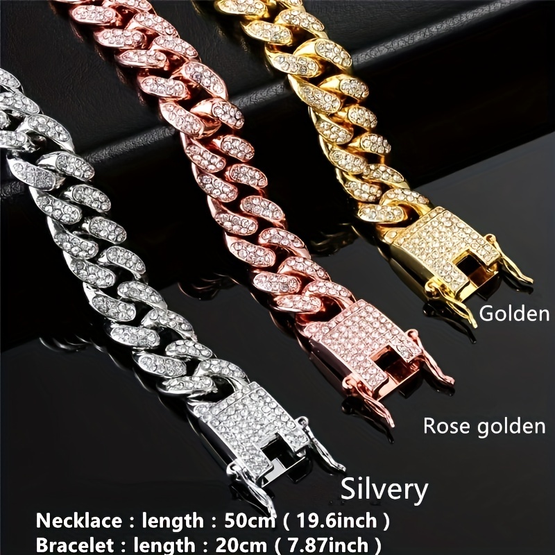 Rhinestone Crystal Cuban Link Chain Men’s Hip Hop Necklace Jewelry