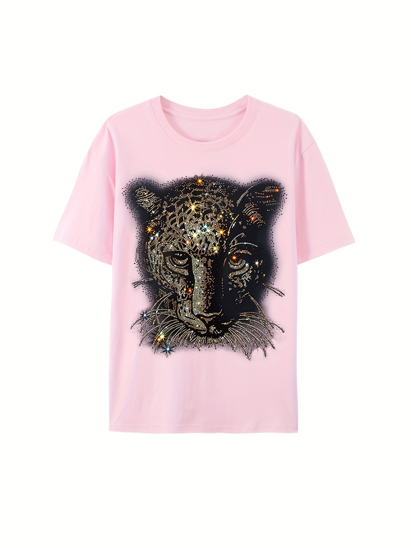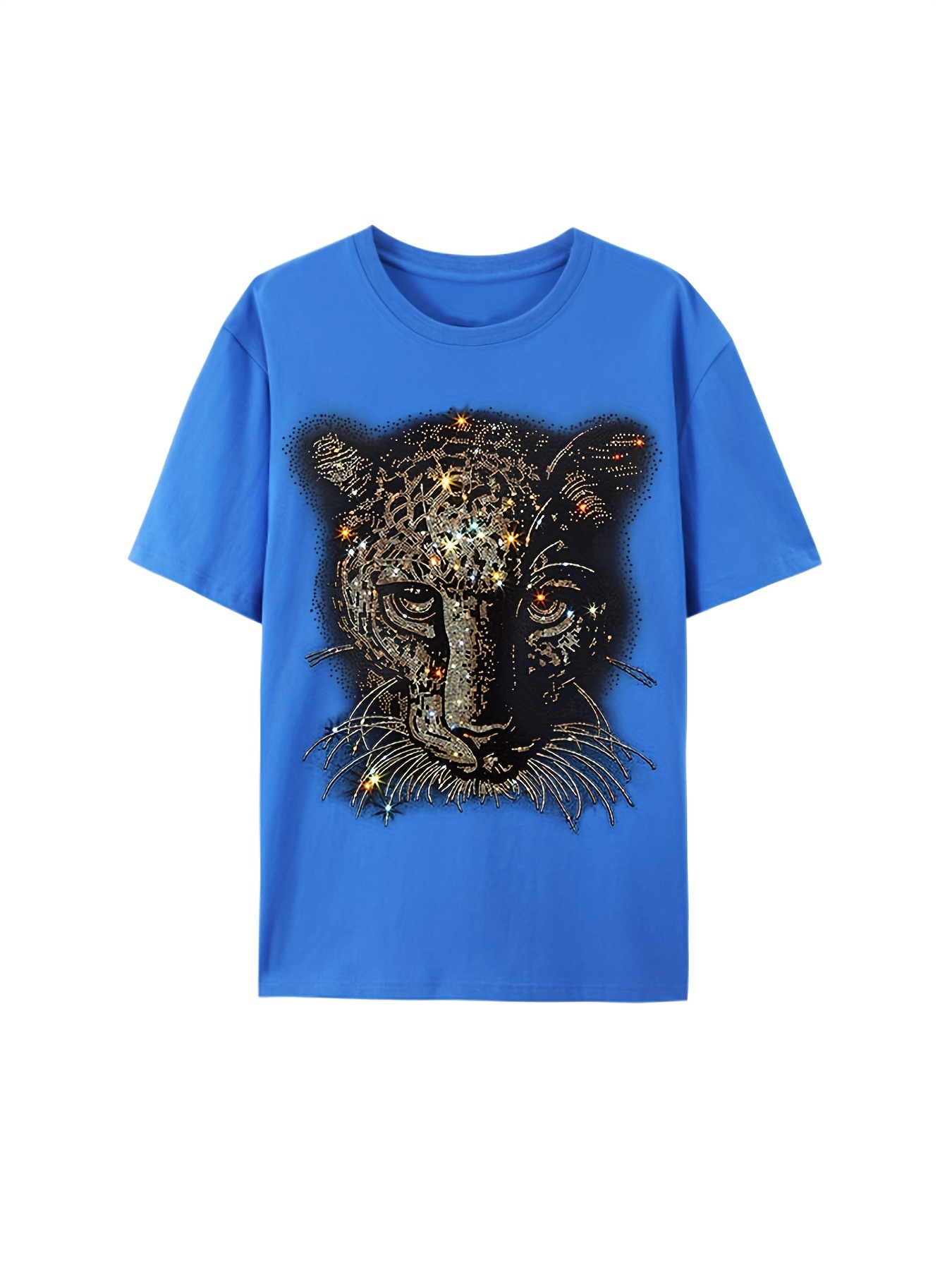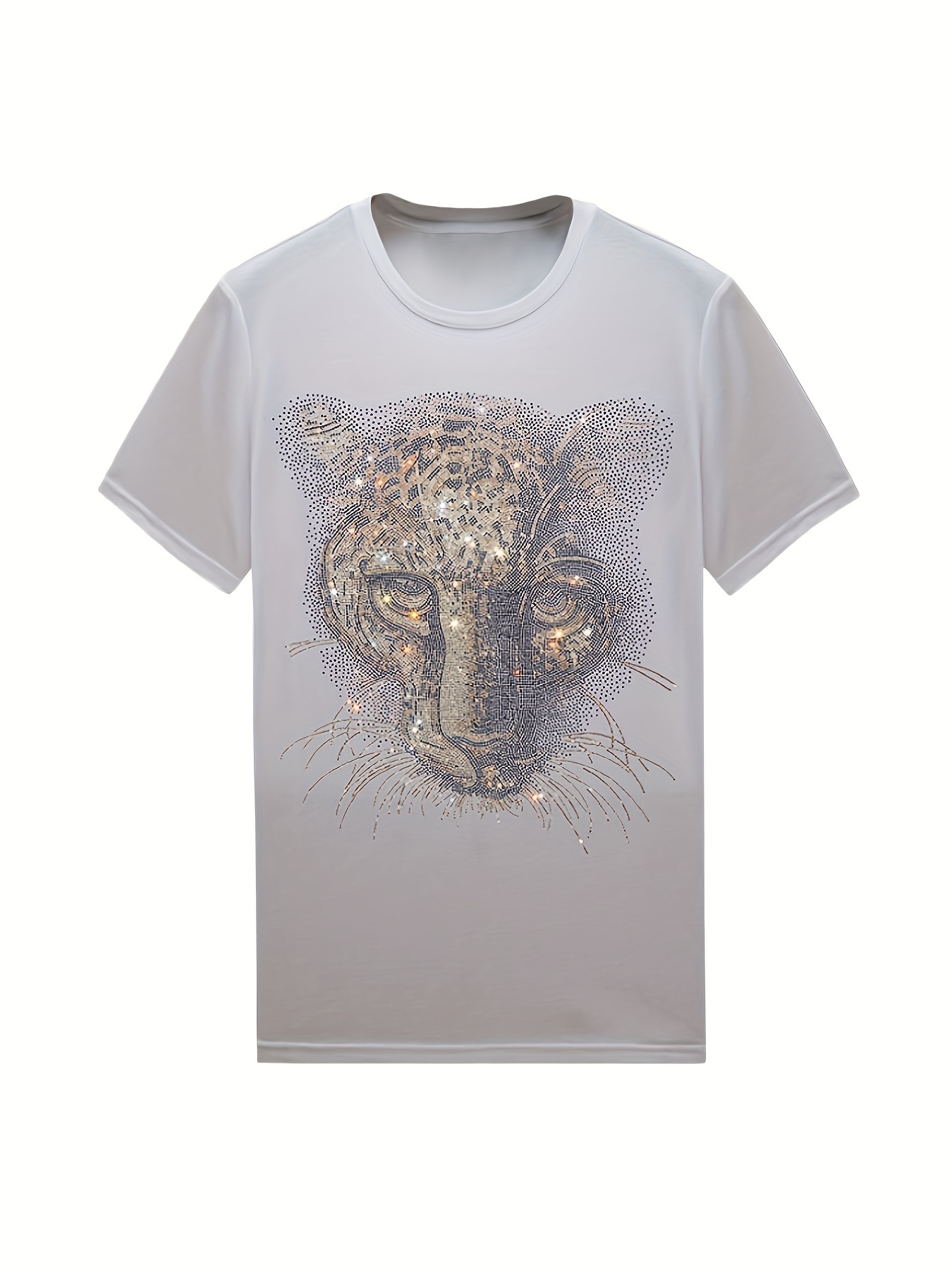 rhinestone leopard t shirt, casual crew neck tees for men