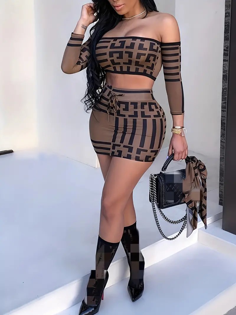 Sexy Geo Print Two-piece Skirt Set