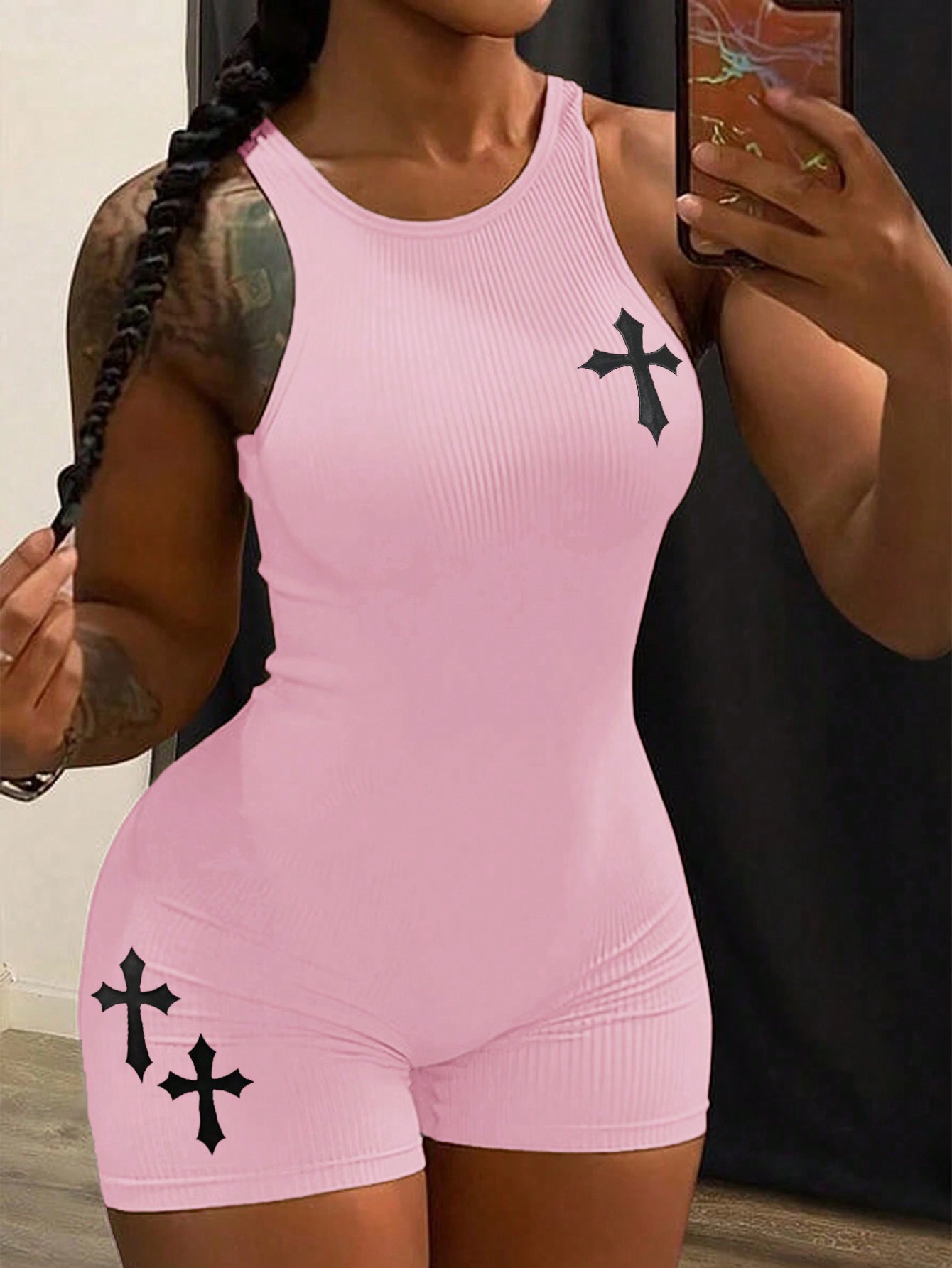 Simple Basic Sleeveless Vest Rib Knitted Jumpsuit