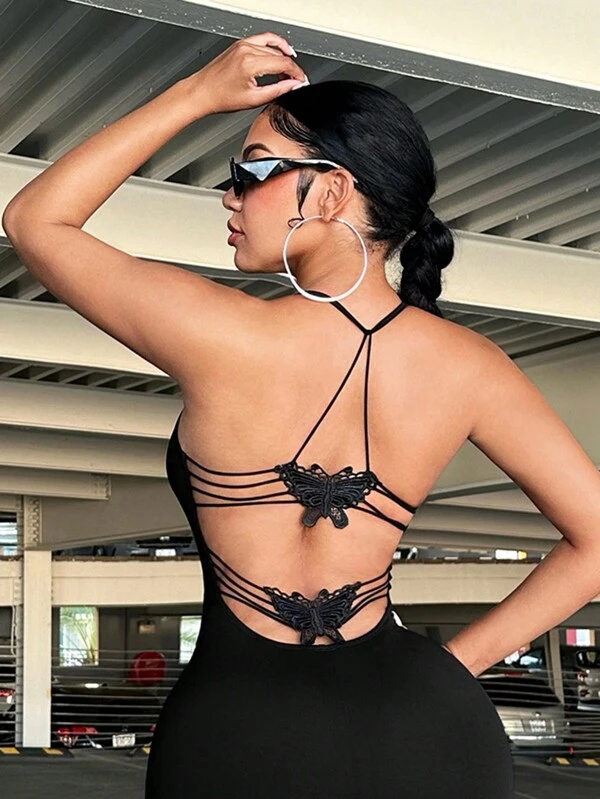 Solid Color Sexy Backless Butterfly Back Detail Bodysuit