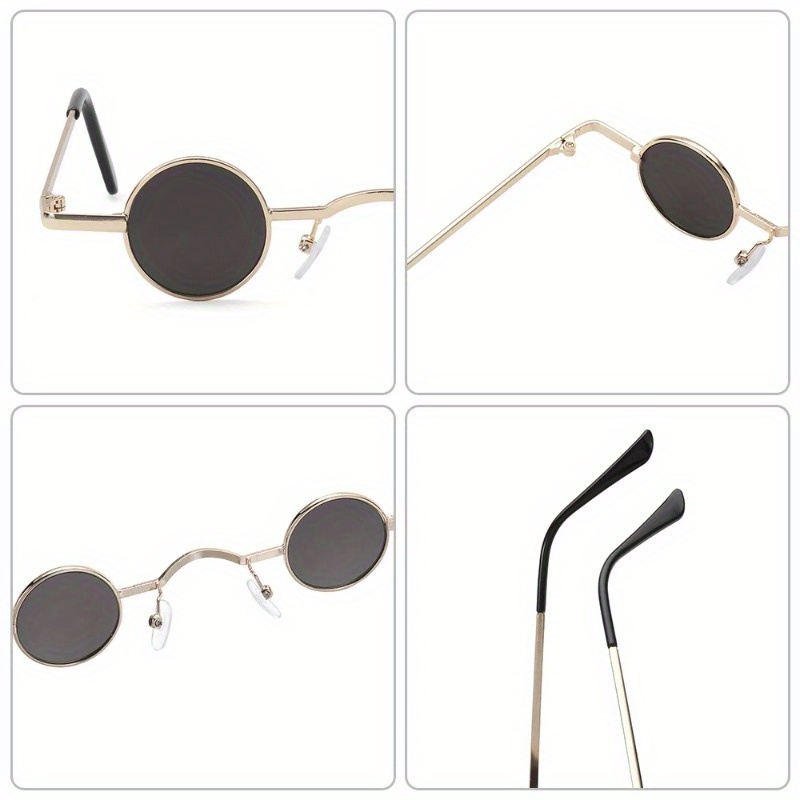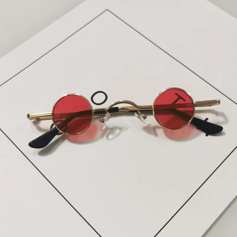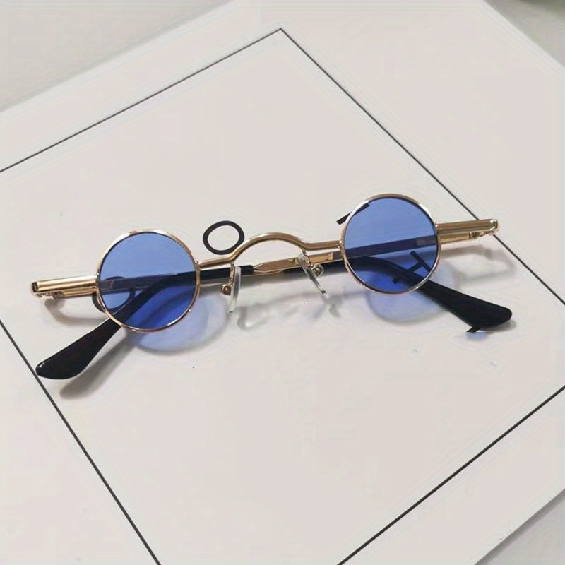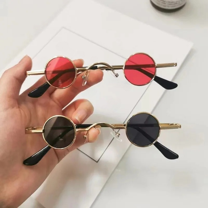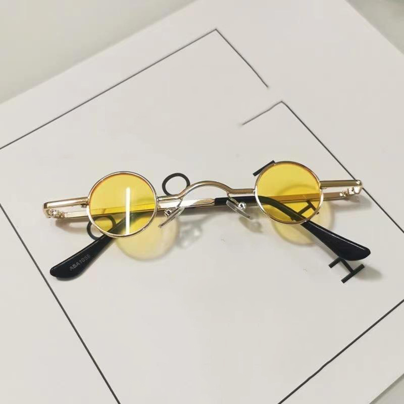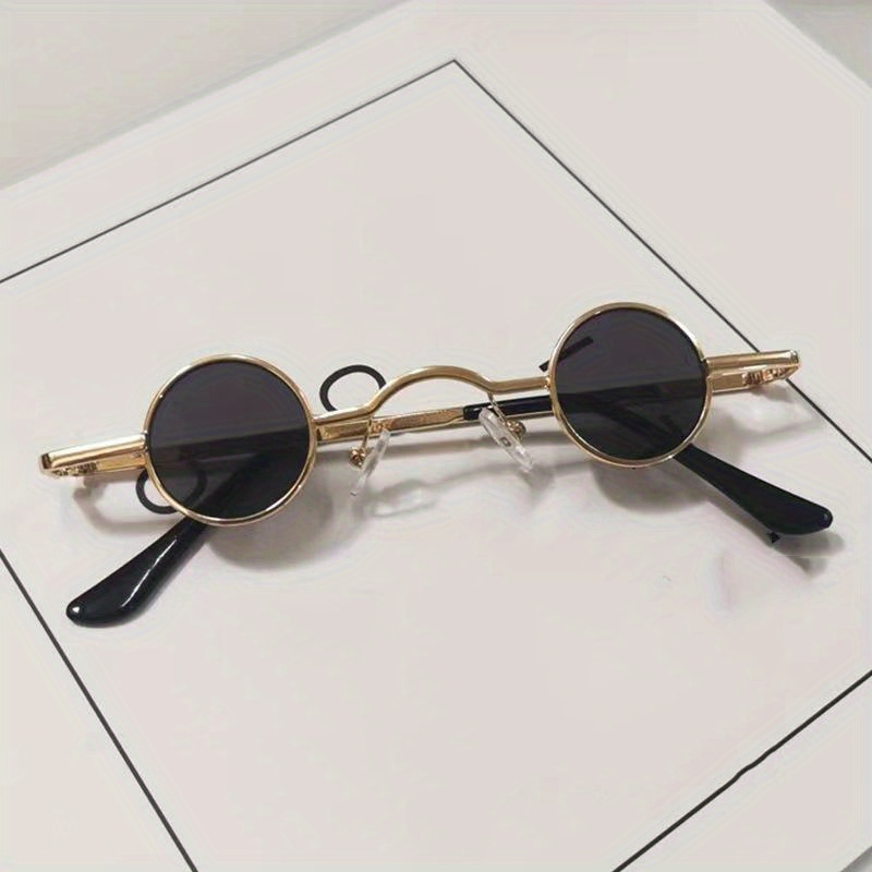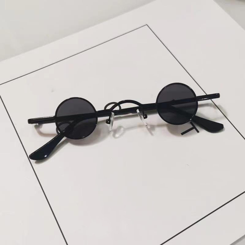 Vintage Punk Mini Round Frame Sunglasses, With Curved Bridge