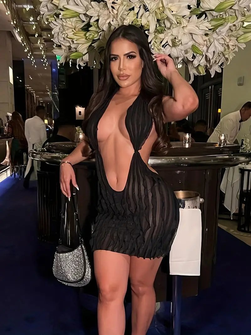 Wavy Stripe Halter Neck Dress, Vacation Sexy Solid Bodycon Dress